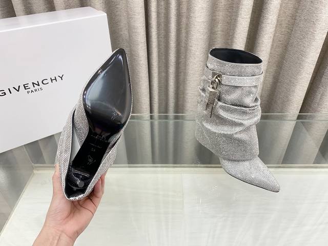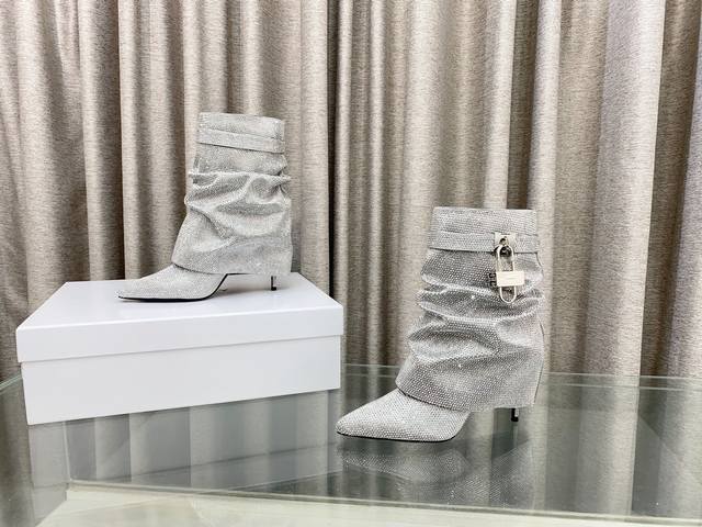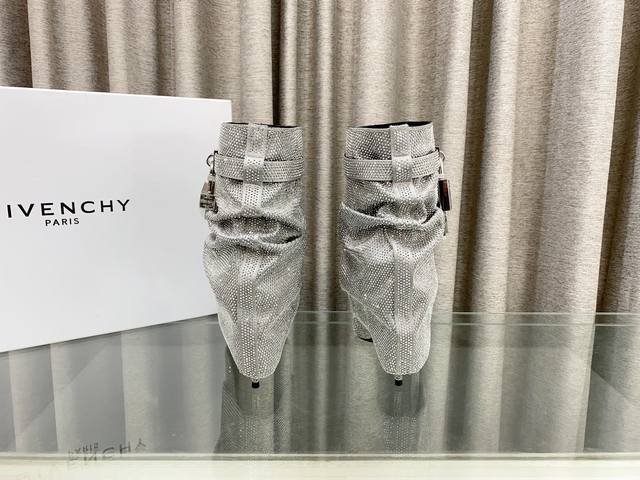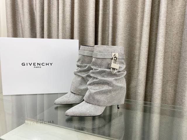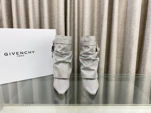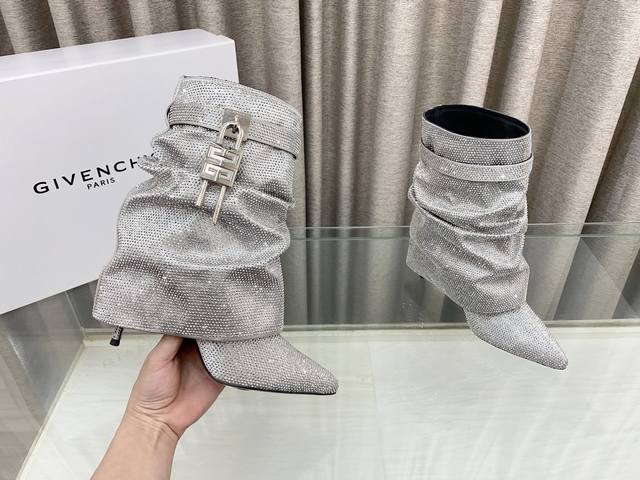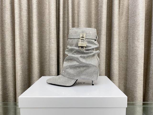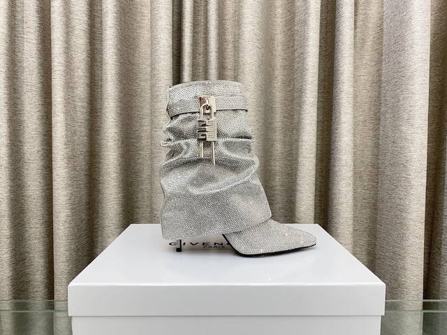 GIVENCHY纪梵希新款高跟打皱褶钻靴,饰以西部风格立体图案 Shark Lock系列