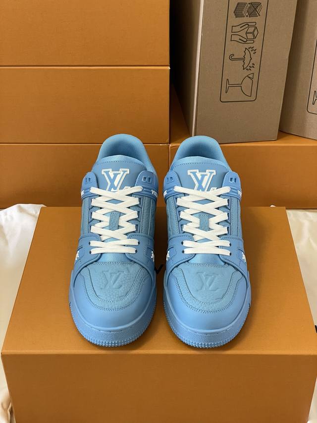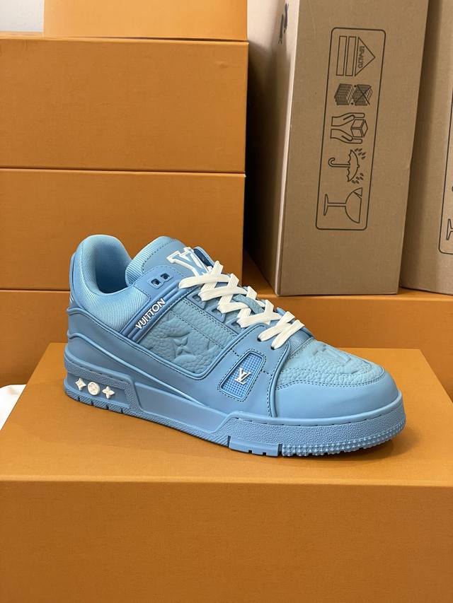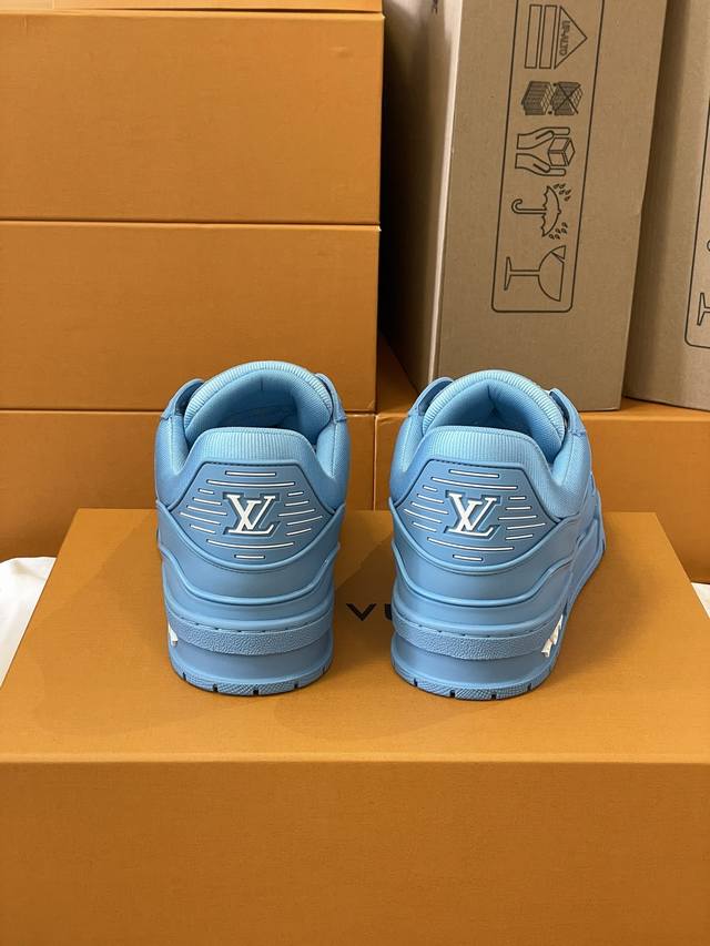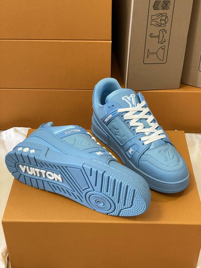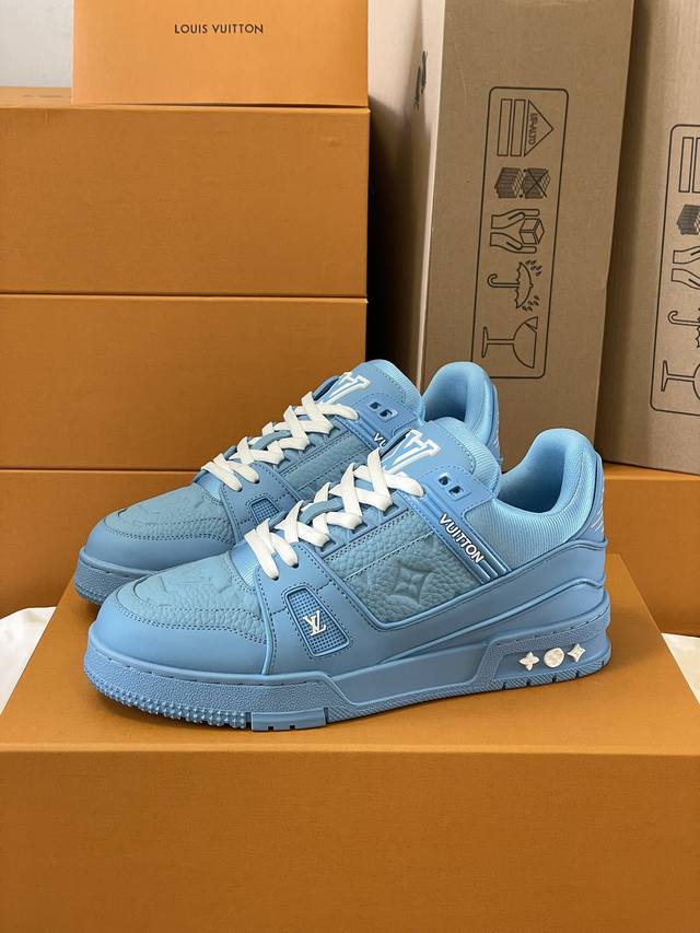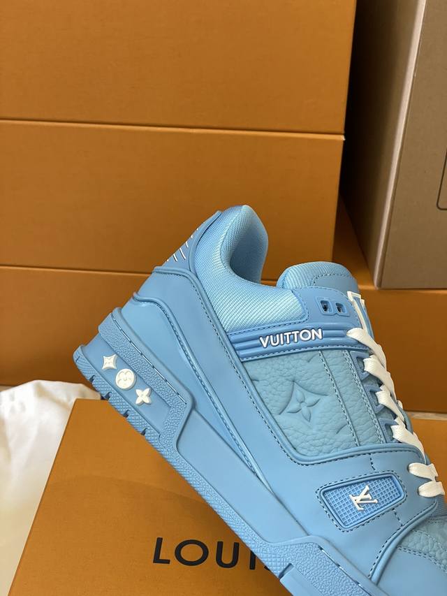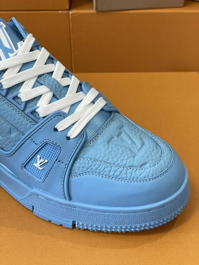 顶级版本 情侣款上线LV Trainer 运动鞋记录设计师Virgil Abloh由复古篮球鞋激发的经典创意 款号 DD 1202 此次拼接光滑牛皮革和Monogram 压纹粒面牛皮革,再以Monogram 花卉点缀橡胶外底,映现一体色彩中的醒目跳跃。