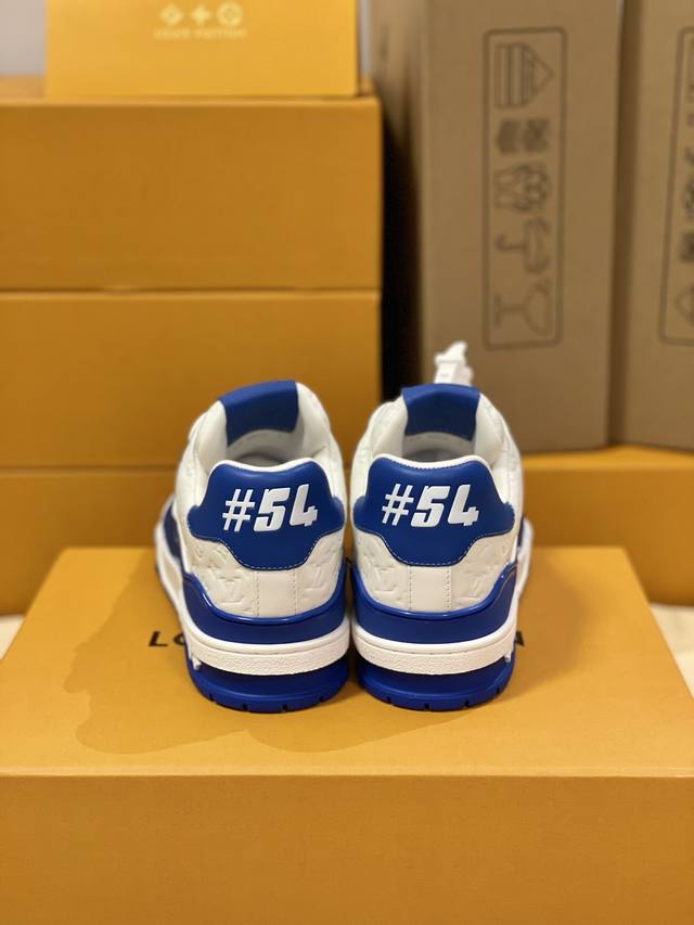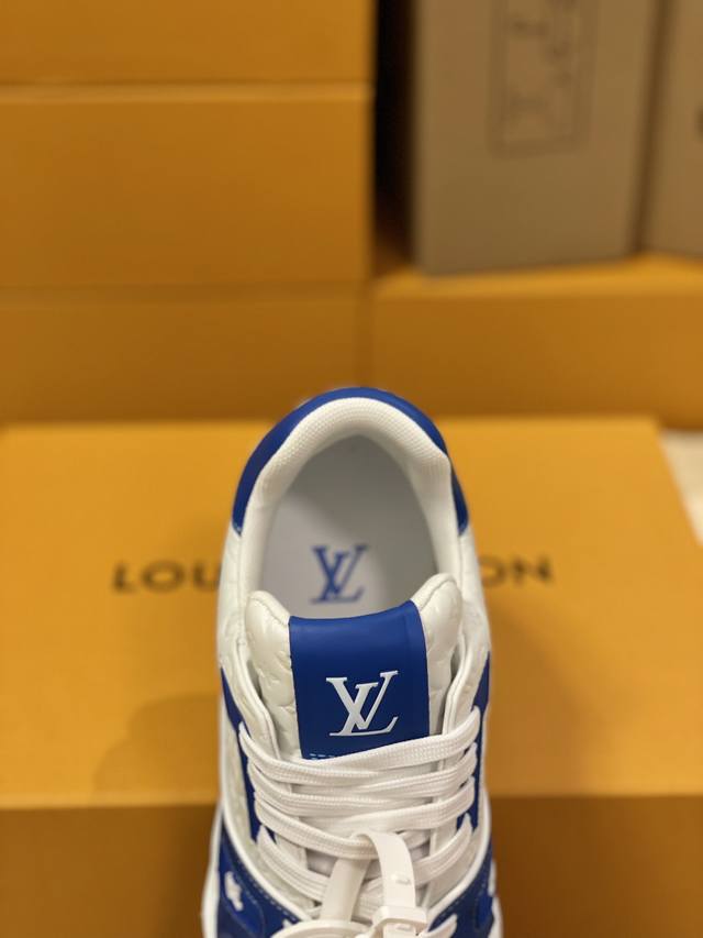 LVTrainer运动鞋款号LD 0727出自VirgilAbloh之手,展现复古篮球鞋的灵感启发。Monogram皮革拼接MiniMonogram压纹牛皮革,鞋面呈