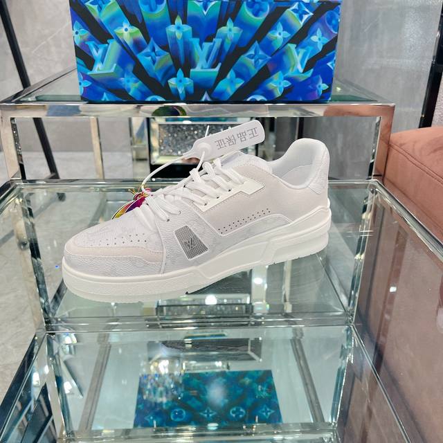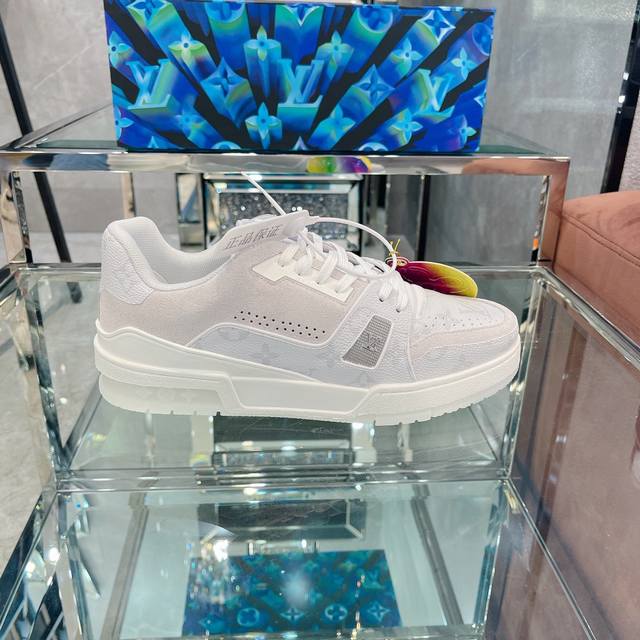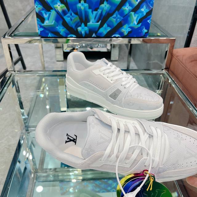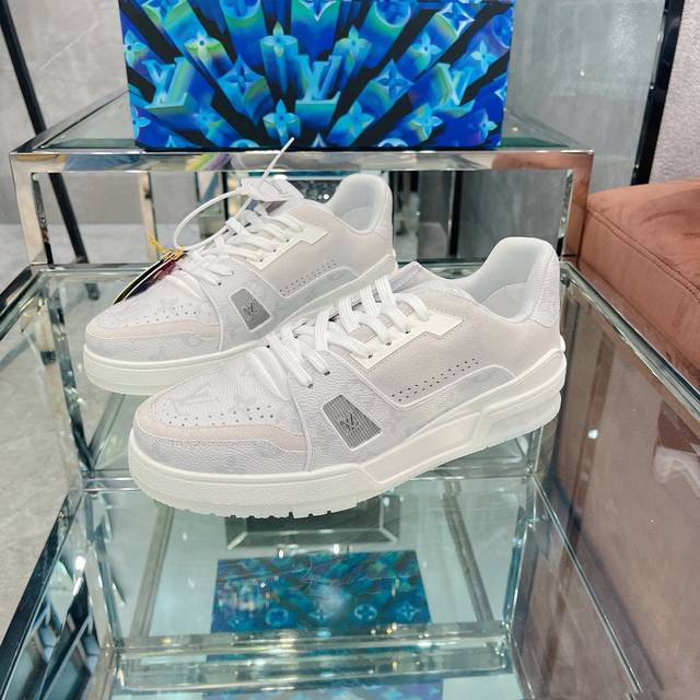 Virgil Abloh 向篮球鞋设计汲取灵感,推出标志性 LV Trainer 运动鞋,经典的花纹富含着整体的特性,此次取材压印细腻 Monogram 图案的,并延续创新凝胶外底带来的舒适体验。