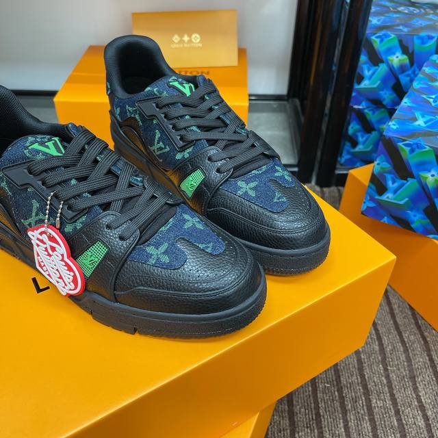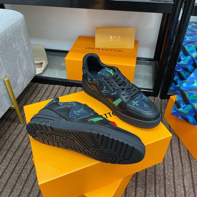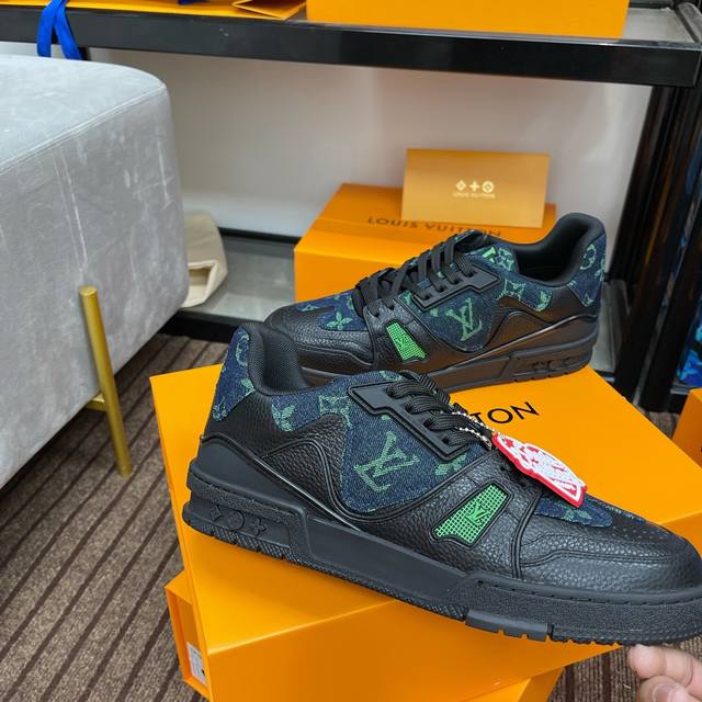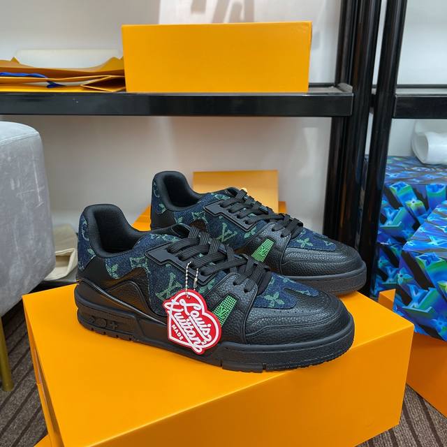 路易威登男装艺术总监 Virgil Abloh 与日本街头时尚大师 Nigo 再度携手,重新演绎经典 LV Trainer 运动鞋。Monogram 牛仔布鞋面搭配小牛皮革饰边,点缀心形 Louis Vuitton2 橡胶贴饰。Nigo 擅长将英伦绅士格调与日本街头文化巧妙融合,展现高雅艺术和前卫潮流的相遇,在业界具有独树一帜的影响力。