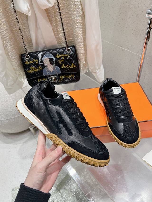 顶级版本 男10Hermes 爱马仕休闲鞋情侣款H家 四季新品运动鞋H家 heros 运动鞋新品简约鞋面牛皮牛筋面,轻盈舒适透气!运动感十足!顶级精品size