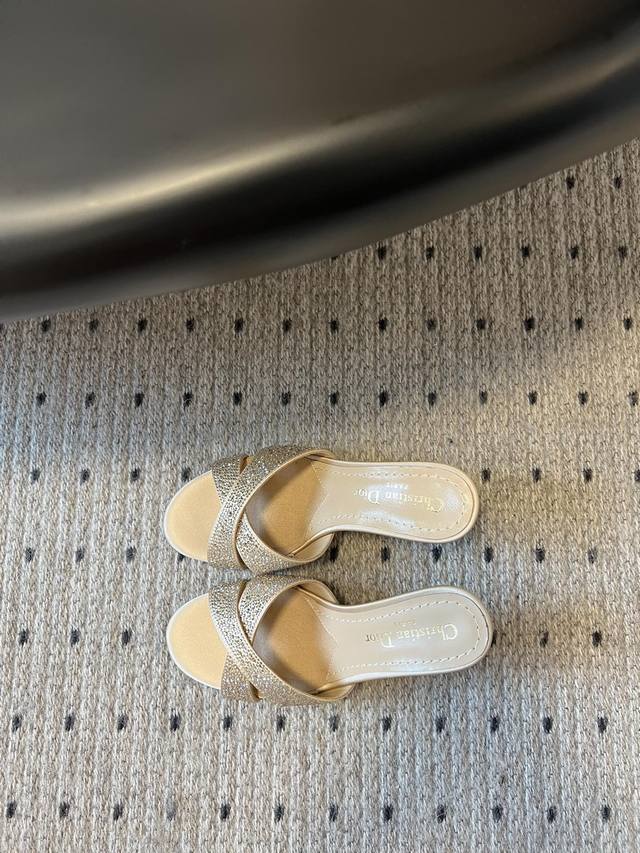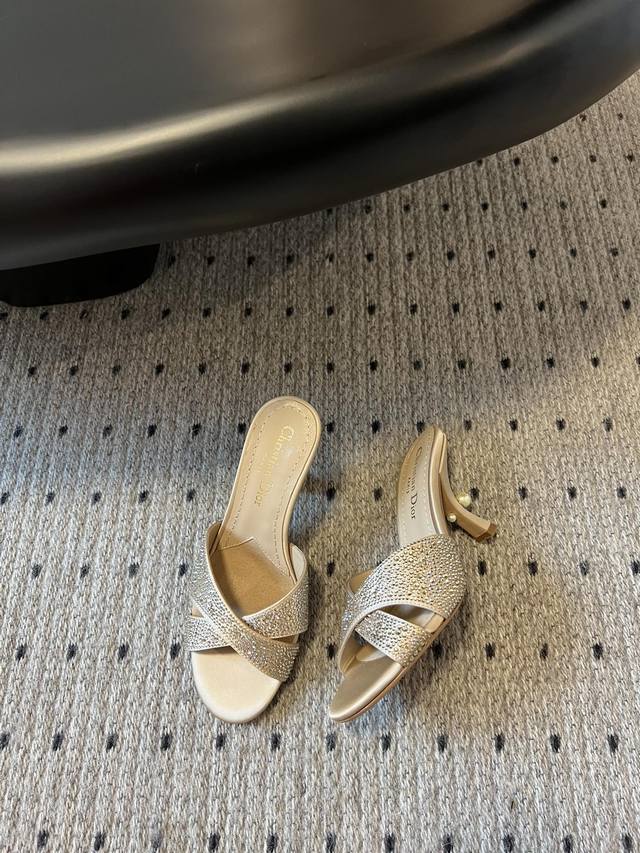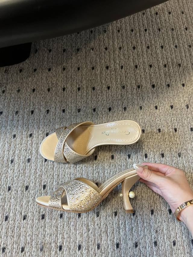 顶级版本 Dior 迪奥25 新品珍珠跟交叉高跟拖鞋