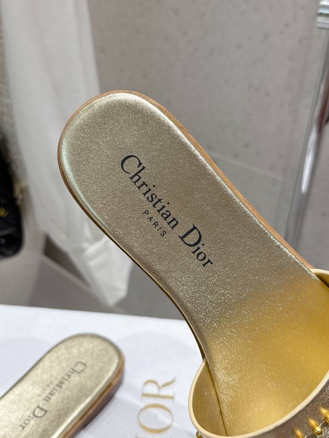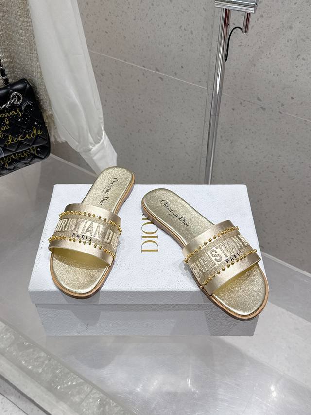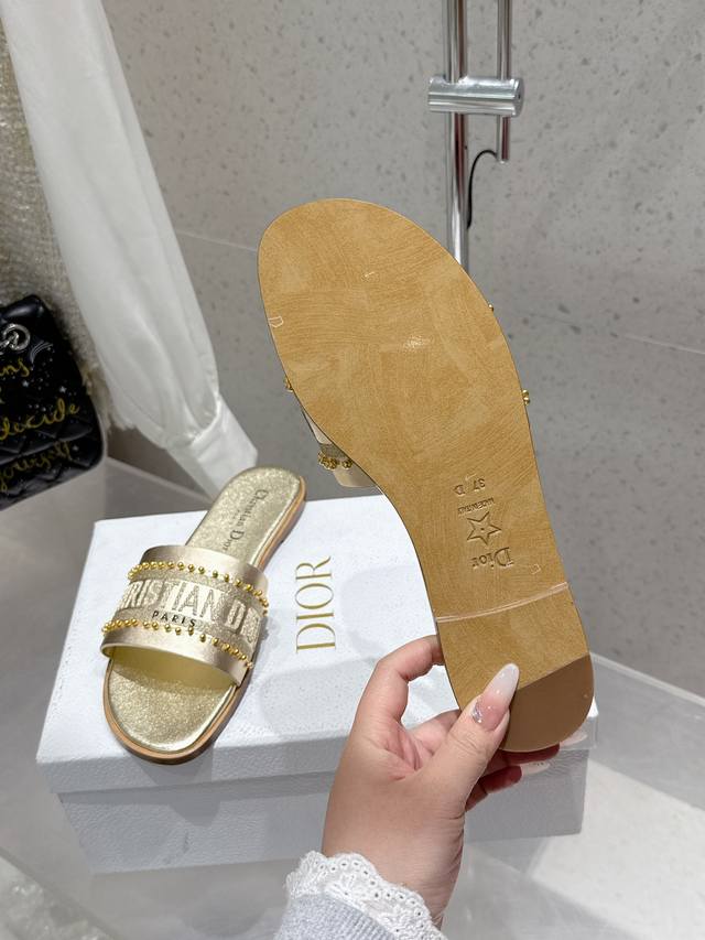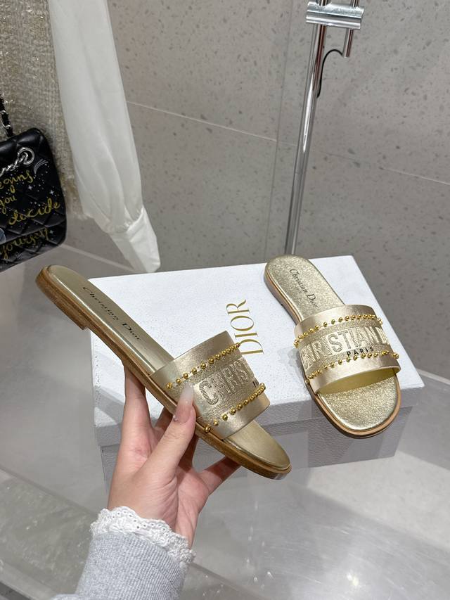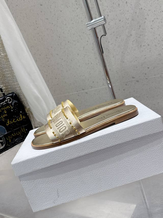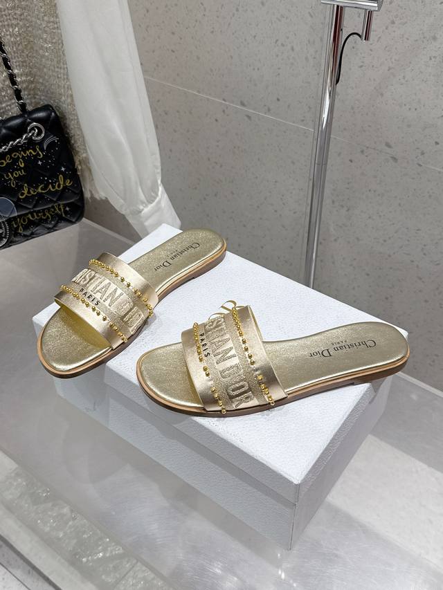 Dior 2025专柜新出 迪奥刺绣字母珍珠拖鞋