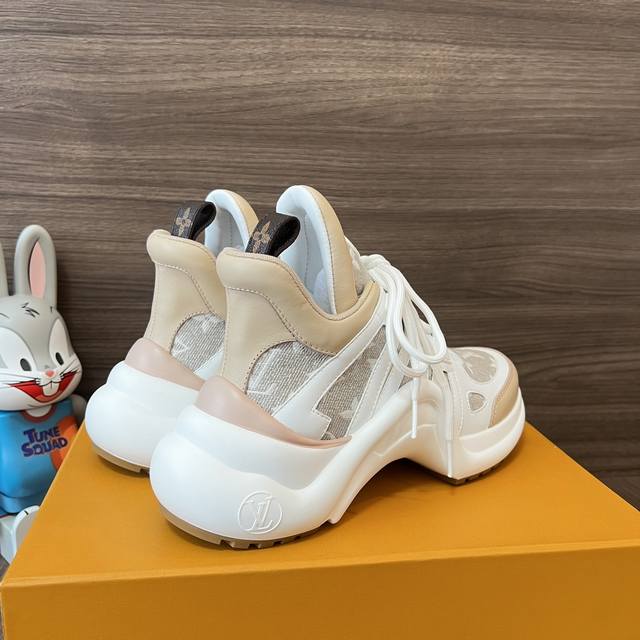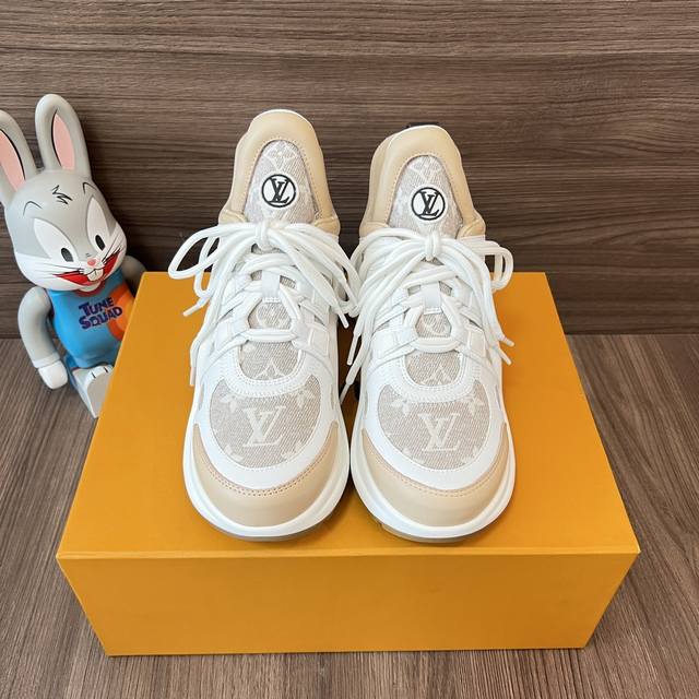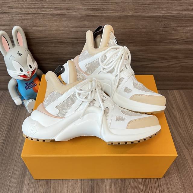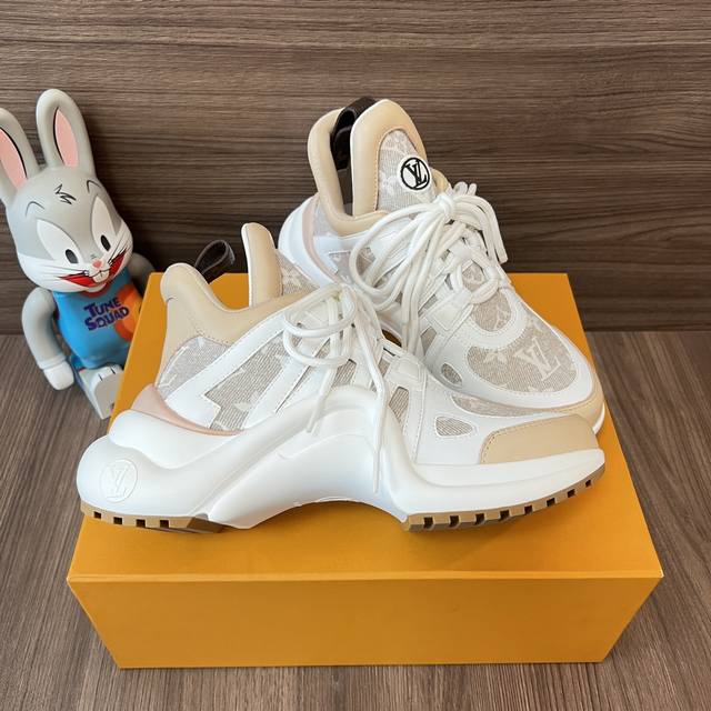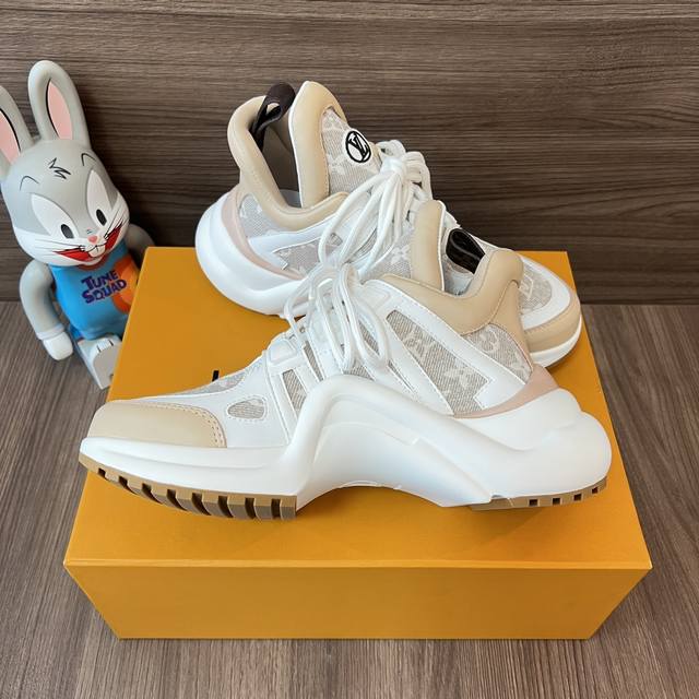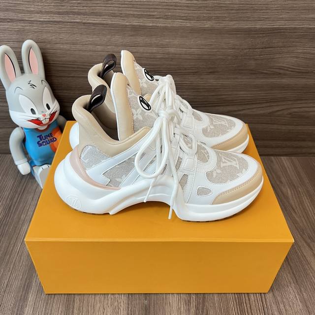/ 顶级版本LOUIS VUITTON Archlight 1.0花纹时尚低帮运动休闲鞋女款浅褐色。面料:科技混合面料拼接牛皮 lv老花皮内里:进口羊皮里 织物垫脚