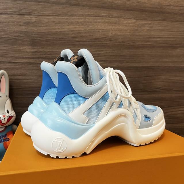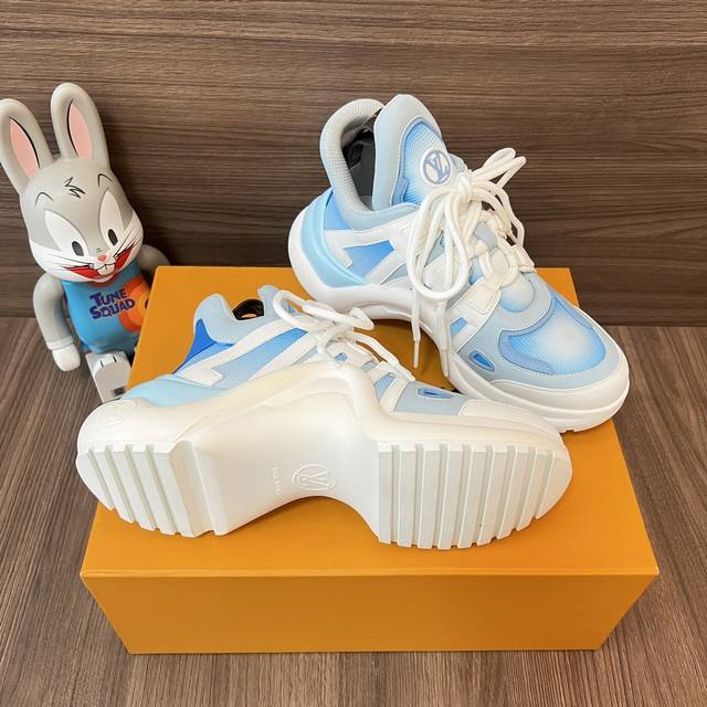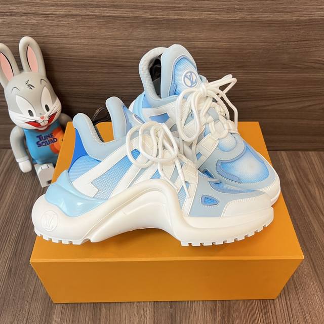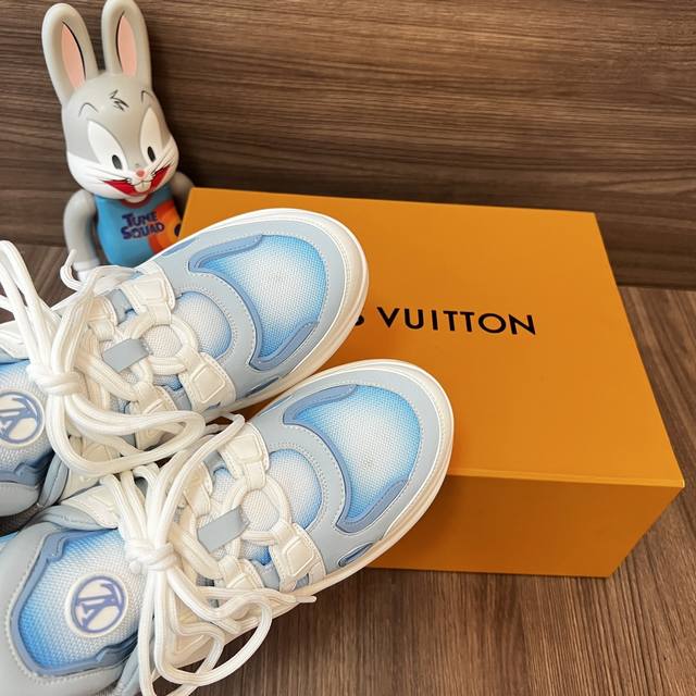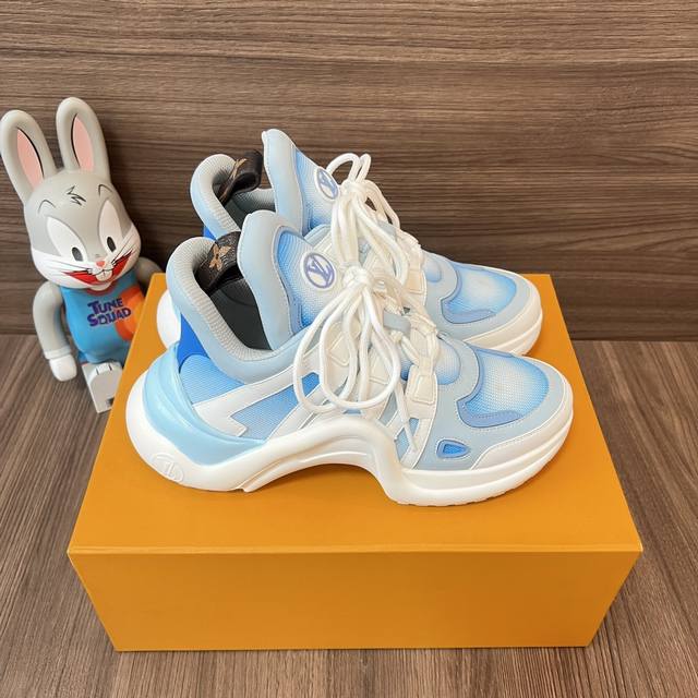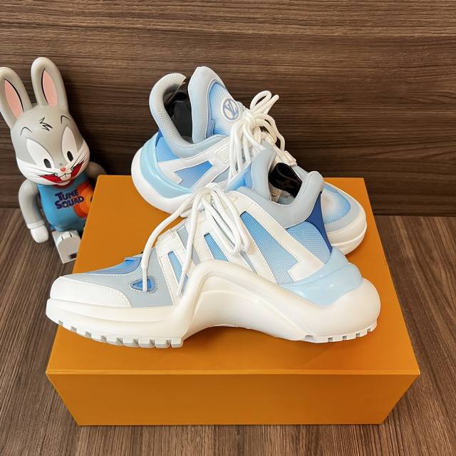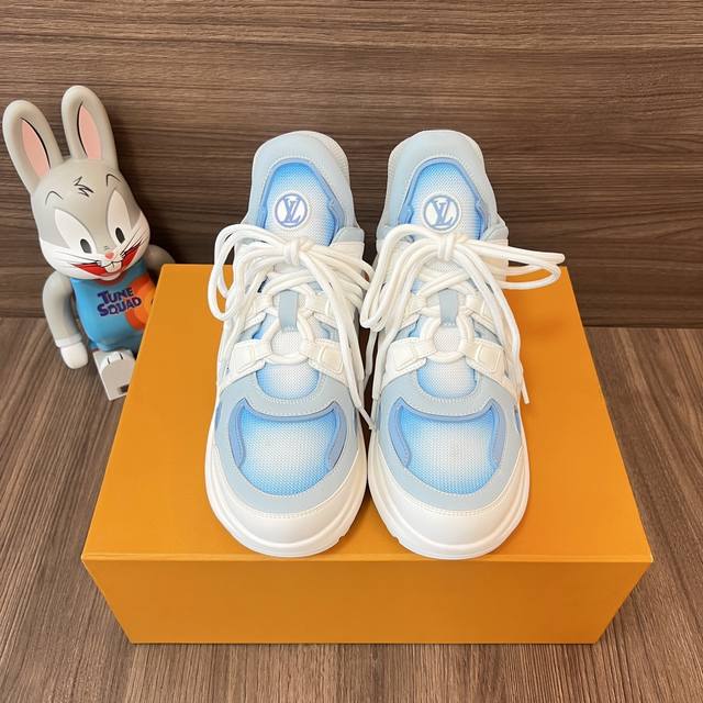 / 顶级版本LOUIS VUITTON Archlight 1.0花纹时尚低帮运动休闲鞋女款白蓝.面料:科技混合面料拼接牛皮 lv老花皮内里:进口羊皮里 织物垫脚: