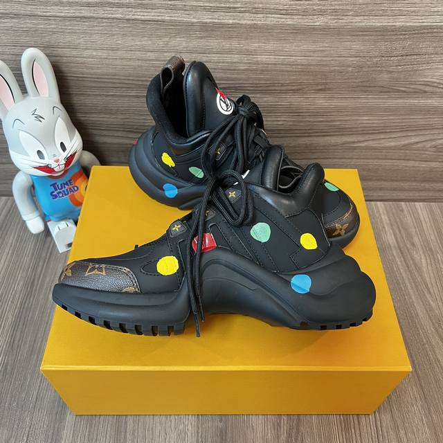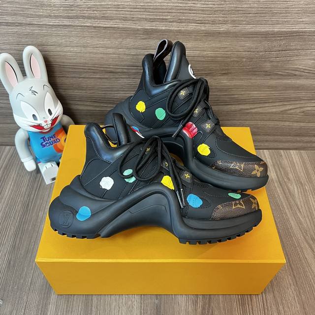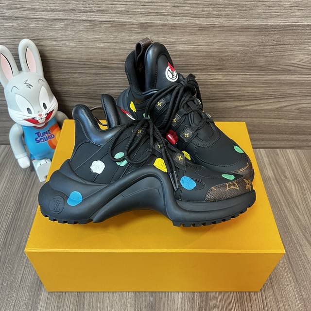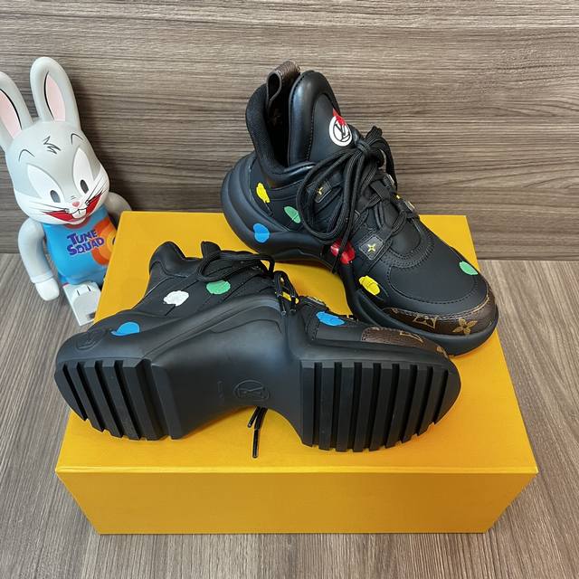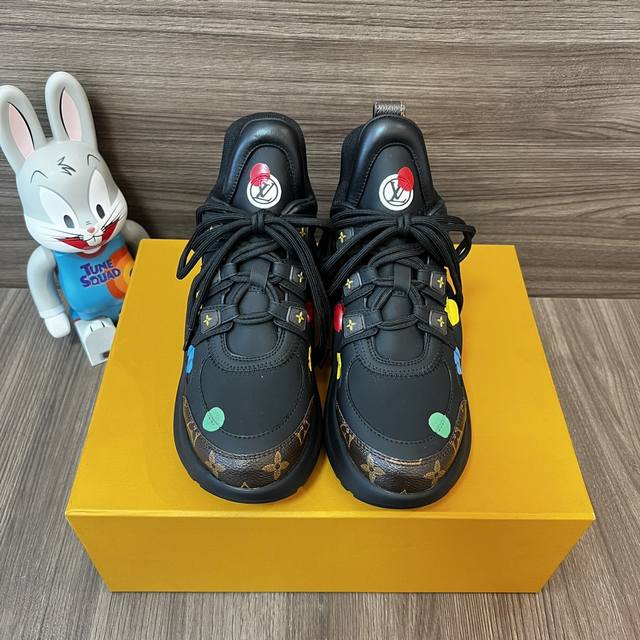 / 顶级版本LOUIS VUITTON Archlight 1.0花纹时尚低帮运动休闲鞋女款黑棕.面料:科技混合面料拼接牛皮 lv老花皮内里:进口羊皮里 织物垫脚: