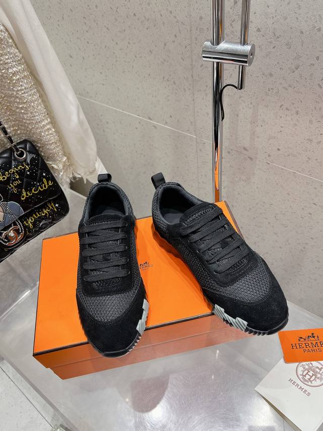 / 顶级版 情侣款 男码10 Hermes 爱马仕 Bouncing男女同款休闲运动鞋情侣款麂皮拼网面休闲鞋女码 35-41 40、41不退换 男码 39~45 4