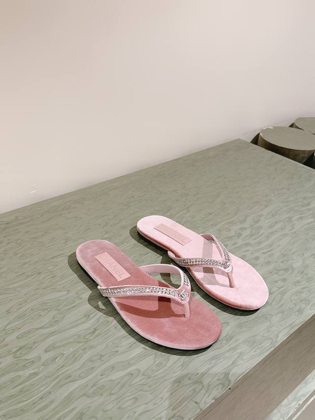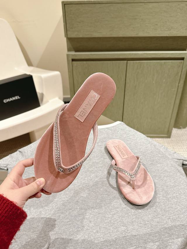 / 香奈儿大爆款!专柜 正品级 版本!选用手工烫钻珍珠人字拖鞋!垫脚:进口天鹅绒面大底:原版意大利真皮大底码数:35-39 34 40 41 定做 专柜同步礼盒包装