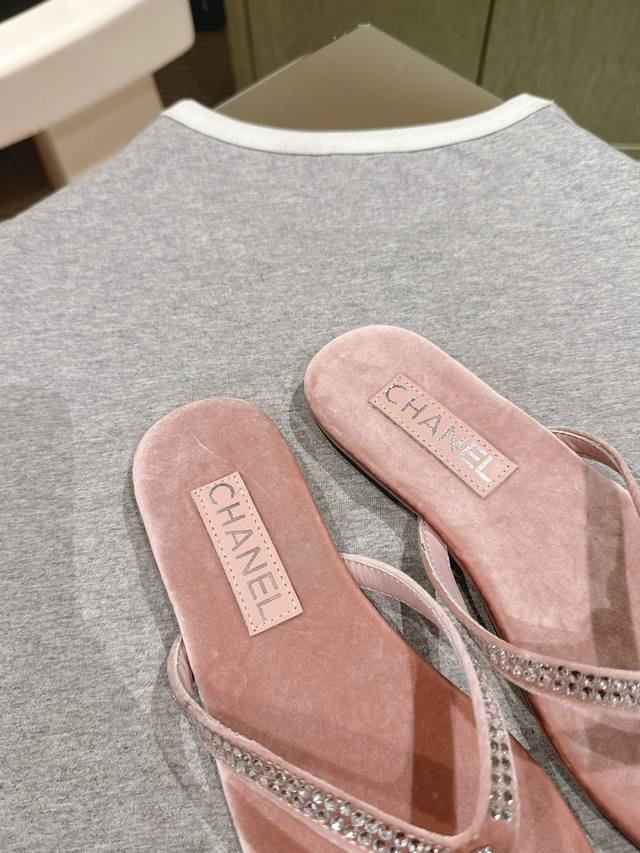 香奈儿大爆款!专柜 正品级 版本!选用手工烫钻珍珠人字拖鞋!垫脚:进口天鹅绒面大底:原版意大利真皮大底码数:35-39 34 40 41 定做 专柜同步礼盒包装