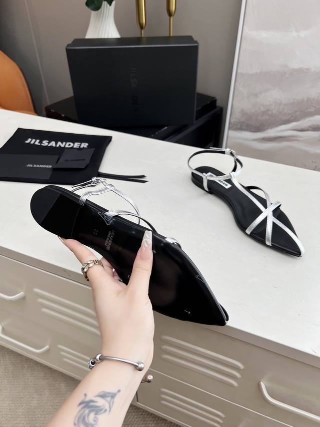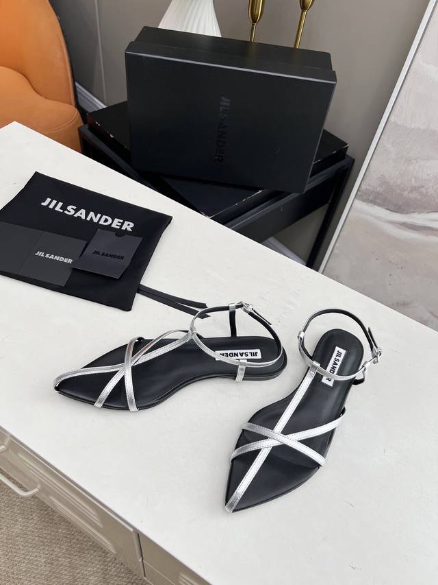 平底小众潮牌网红款 Jil sander 2024吉尔 桑达早春凉鞋系列!春夏最新爆款时髦平底尖头带子凉鞋