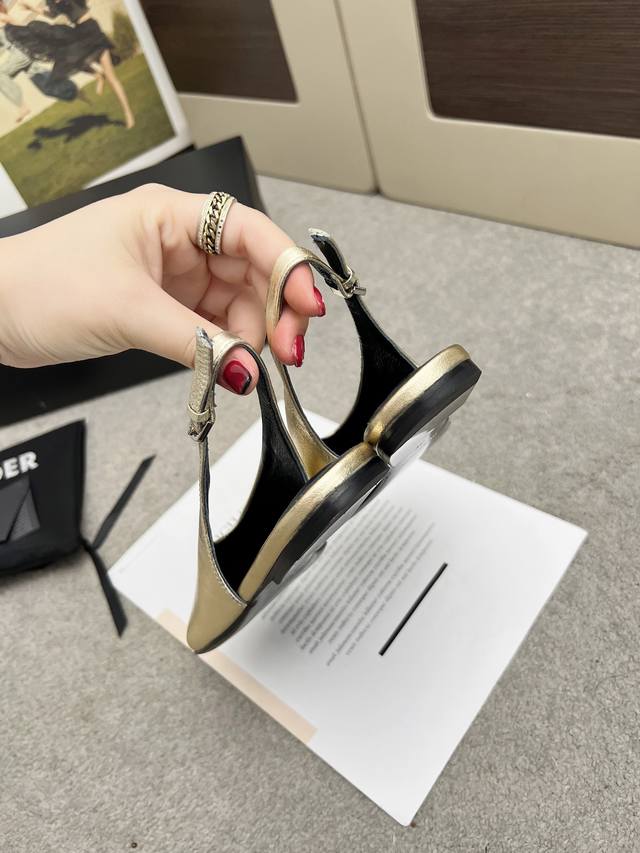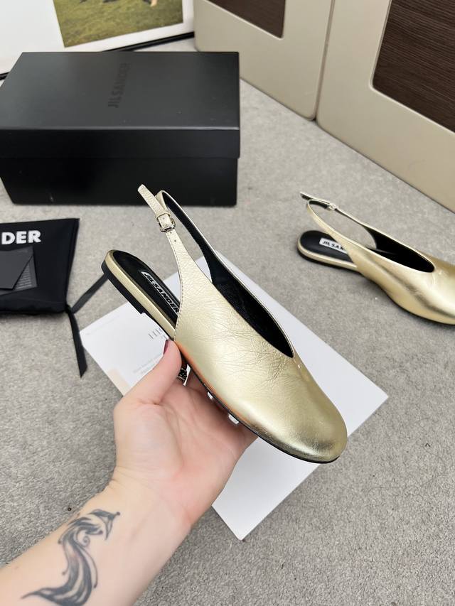 JILSANDER 24春夏极简主义平底圆头后空凉鞋单鞋