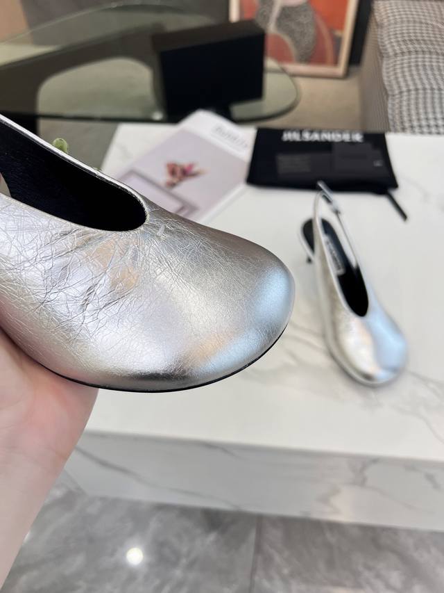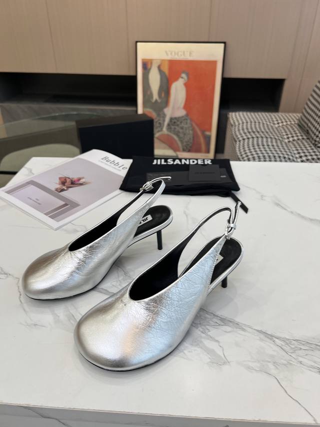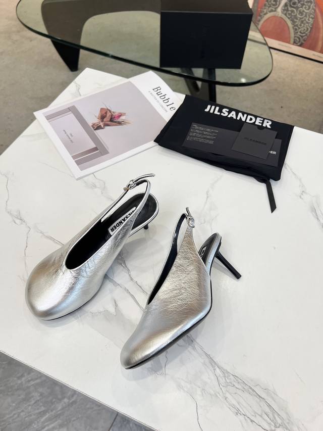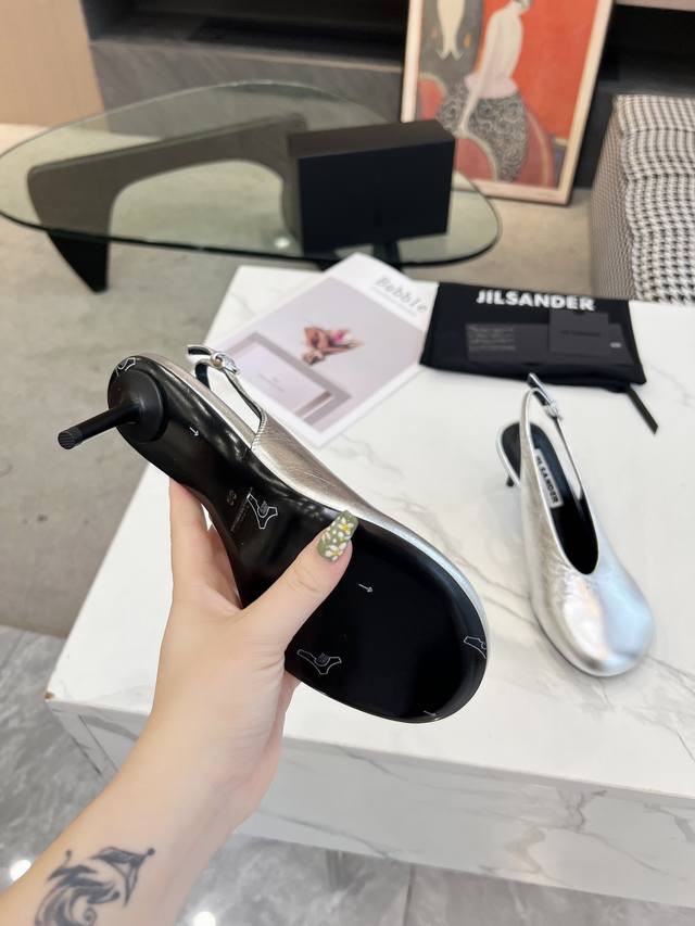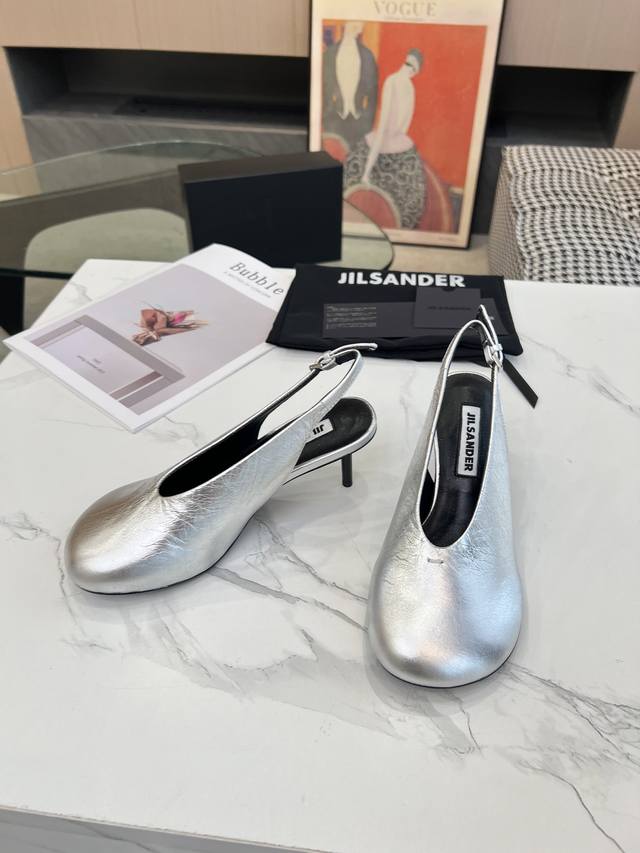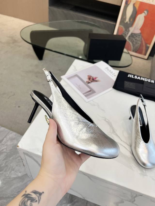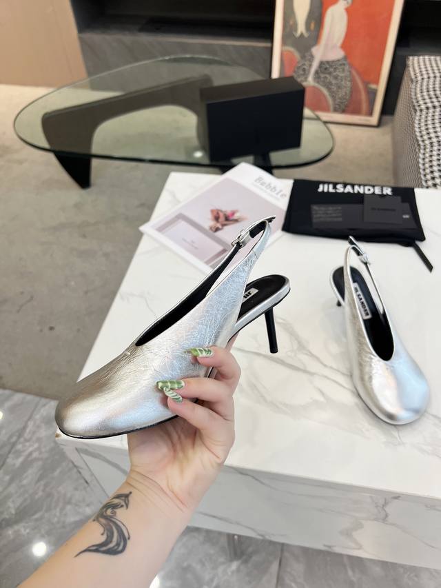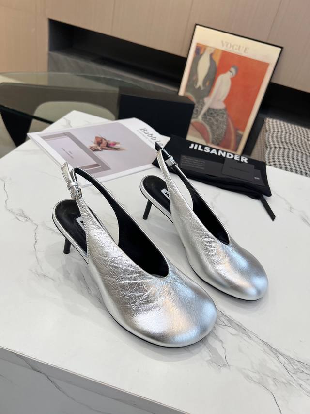 JILSANDER 24春夏极简主义高跟圆头细跟后空凉鞋单鞋