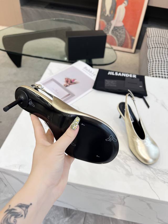JILSANDER 24春夏极简主义高跟圆头细跟后空凉鞋单鞋