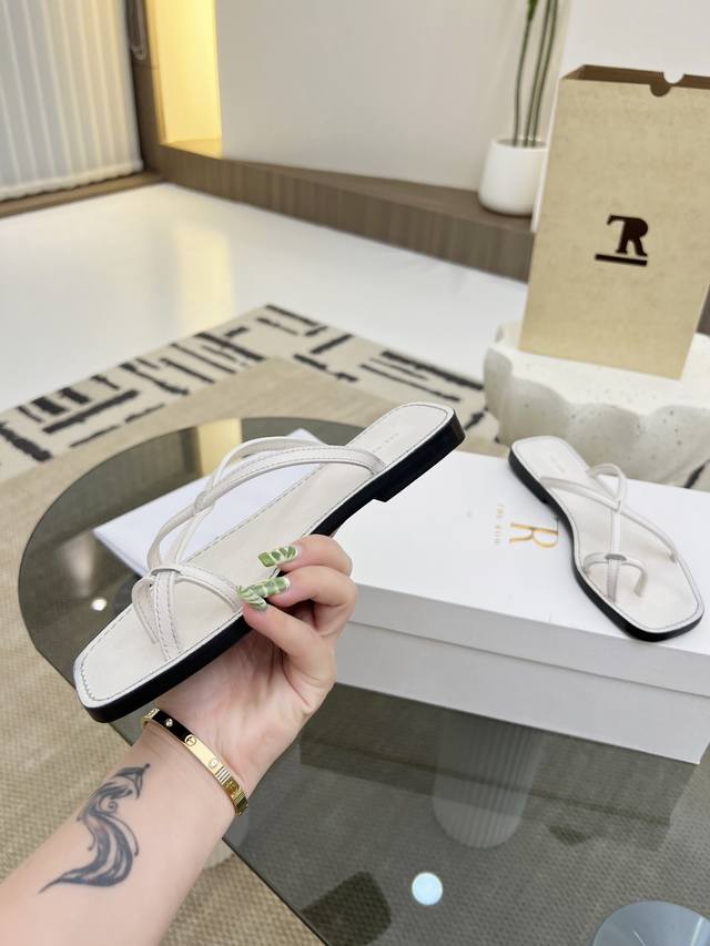 The row2024新款小众法式夹脚拖鞋女真皮这双简直就是年度梦中情鞋 年度必入高级感从里到外散发了 无论是日常居家还是闲逛街头,这款夹趾人字拖将为您带来非凡的穿着享受与时尚体验