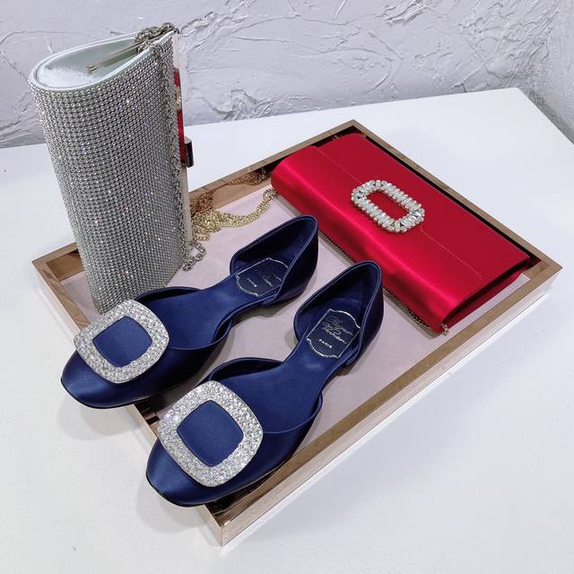 / 高品质 !名媛款Roger vivier chips 经典之作RV中空钻扣真丝平底鞋原版购入1:1开模,细节超完美!质量欢迎对比!面料采用意大利进口100%真丝