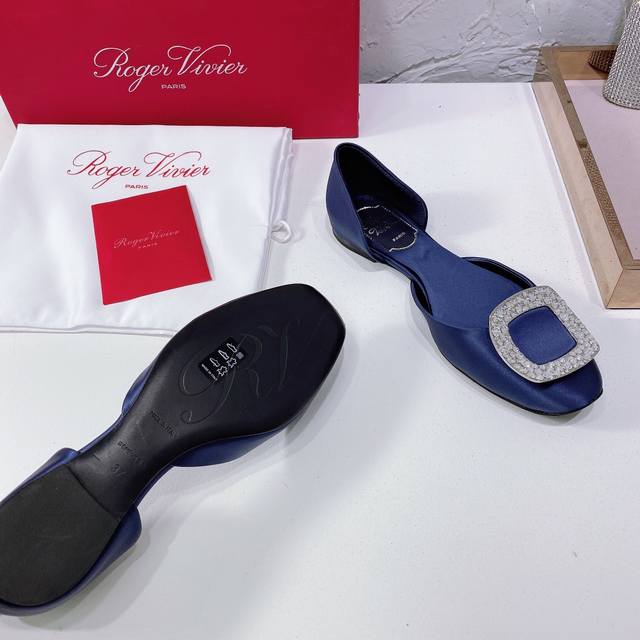 高品质 !名媛款Roger vivier chips 经典之作RV中空钻扣真丝平底鞋