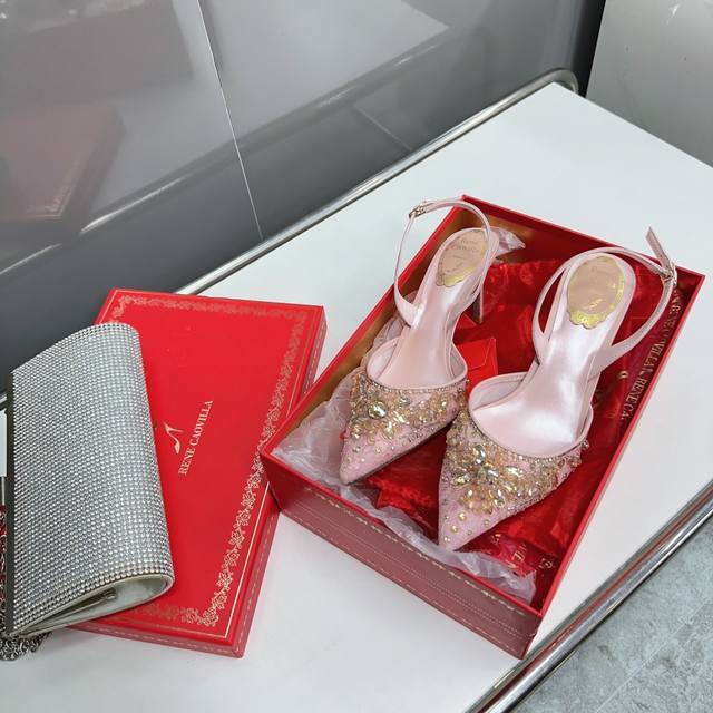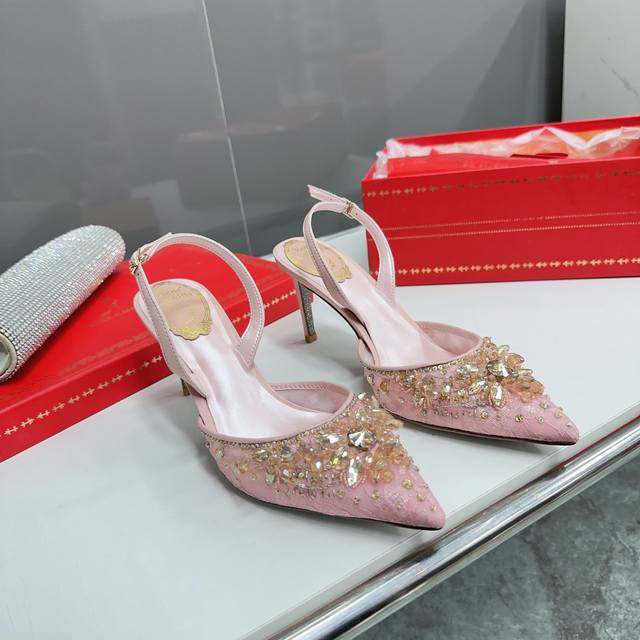 高品质 !R C s原版做货重工婚鞋RC水晶宝石真丝跟鞋系列鞋面:进口网纱蕾丝配珠光羊皮面,纯手工一比一缝钻定制,进口超闪昂贵施华洛水晶钻,上脚华丽BlingBling精致逼人 内里:粒面珠光羊皮里