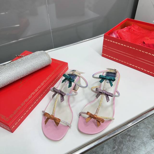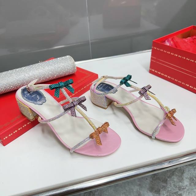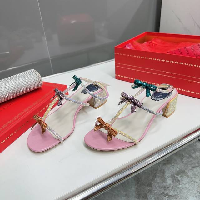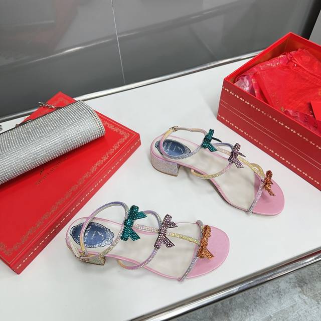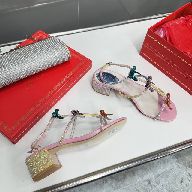 高品质 !R C s RC经典款蝴蝶结粗中跟凉鞋,多彩水晶蝴蝶结装饰在足背,以小巧的水钻彩组成的彩色蝴蝶结,带出高贵肌肤感,亮眼的珊瑚色系在足背跳岀,完美搭配微小的色调水晶和闪亮的外底,踩出闪亮的每一步,带来甜美的少女气息。新一季CATERINA推出全新色系蝴蝶结,带上镶满深色水钻足背上闪耀着低调奢华的光芒,带点率性仍旧不失女人味 鞋面:进口真丝+克里奥水晶钻 内里:粒面珠光羊皮里 大底:原版一致真皮大底 Size:34-42 40.41.42订做不退换