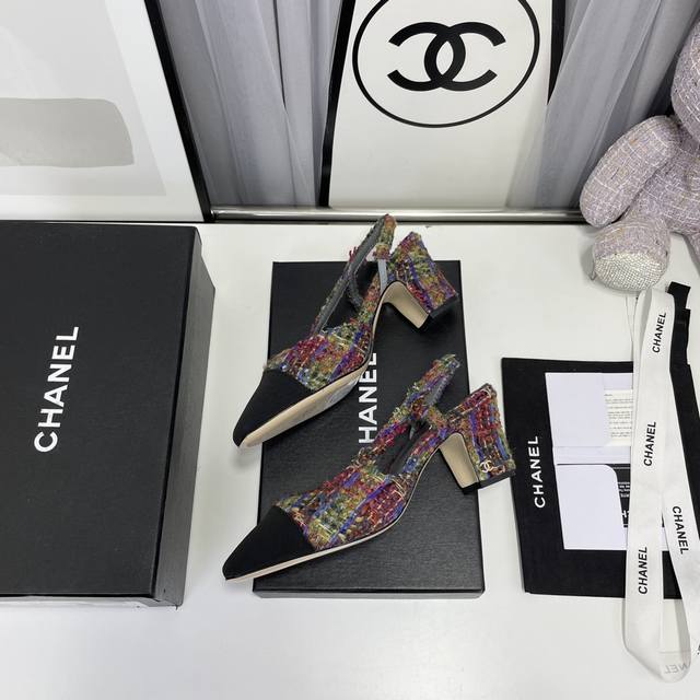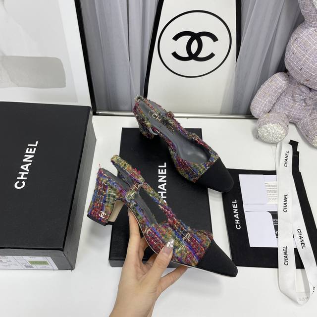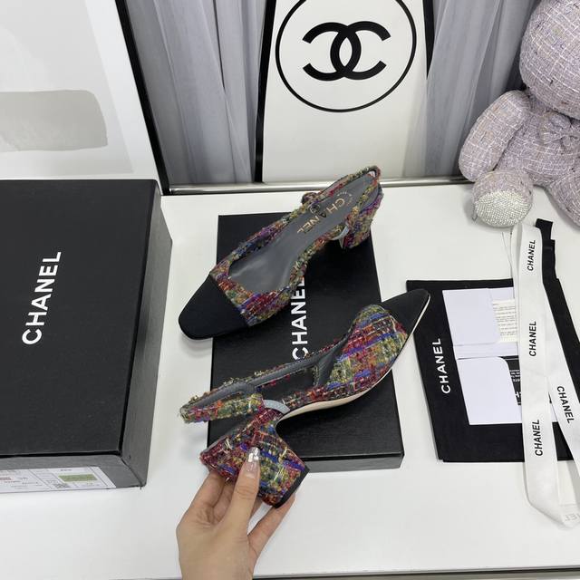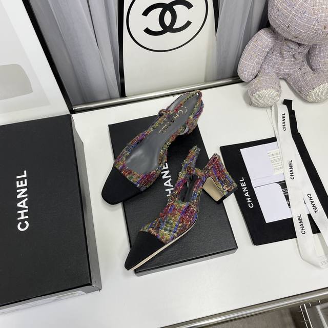 高版本 经典之作,代购级别 CHA最值得拥有的经典款 粗跟方头拼色百搭高跟后空女凉鞋 材质:鞋面采用进口全粒面混种羊皮拼接真丝绸缎+内里混种羊皮+意大利进口牛皮底Size:35–39 34 40 41 42 43钉做 跟高:平底,6cm