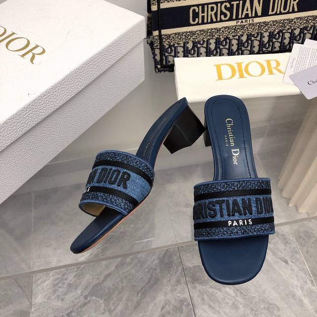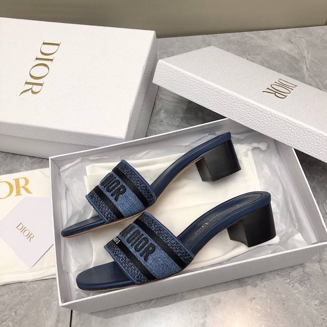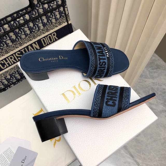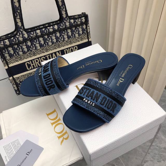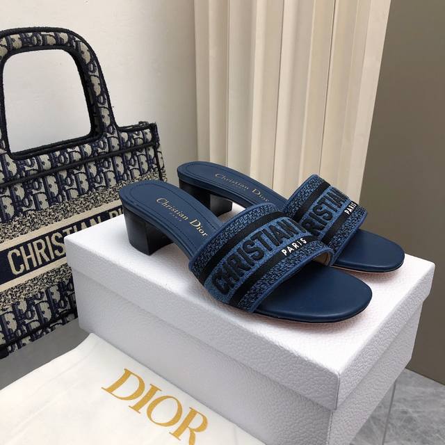128号花色 中跟版 早春新款提花刺绣凉拖鞋♀