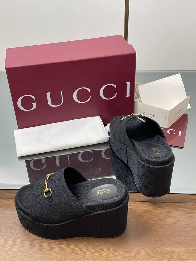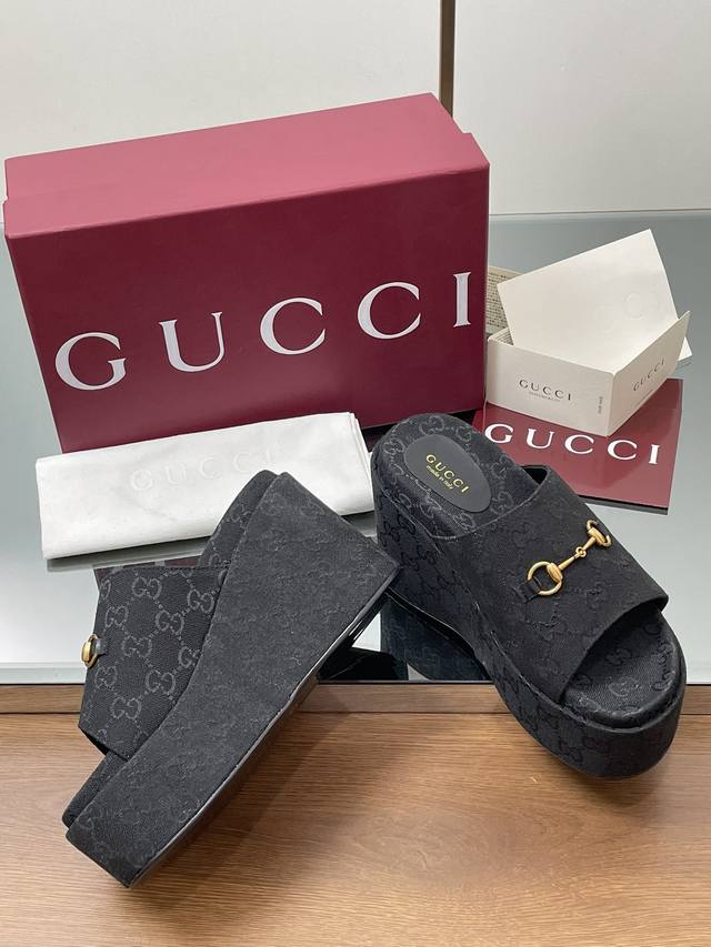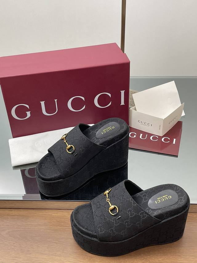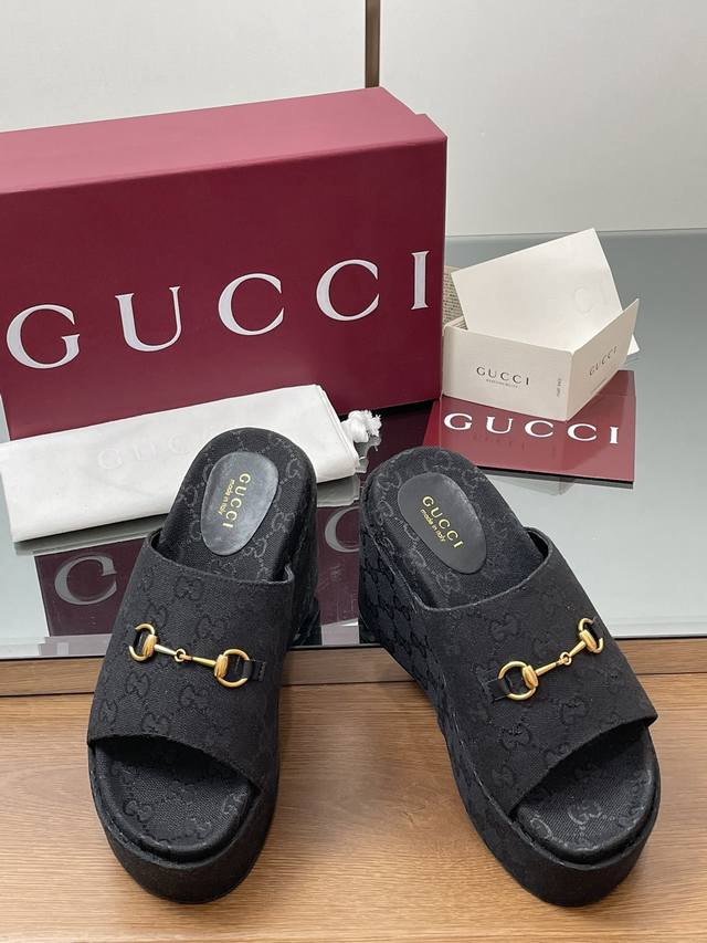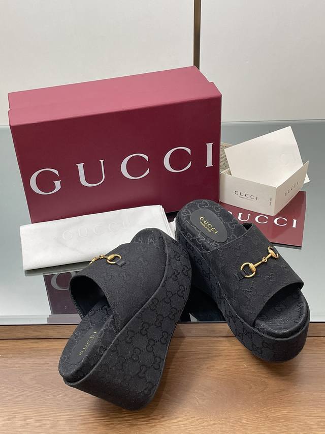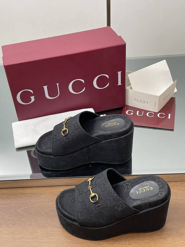 2025古奇春夏超级双GG系列新款马衔扣高厚底拖鞋 高水台坡跟凉拖鞋