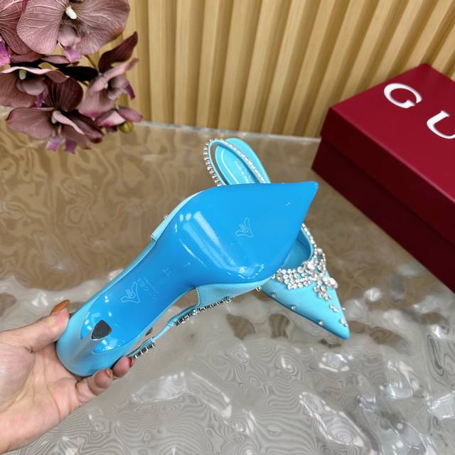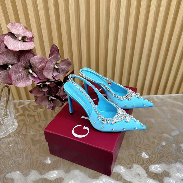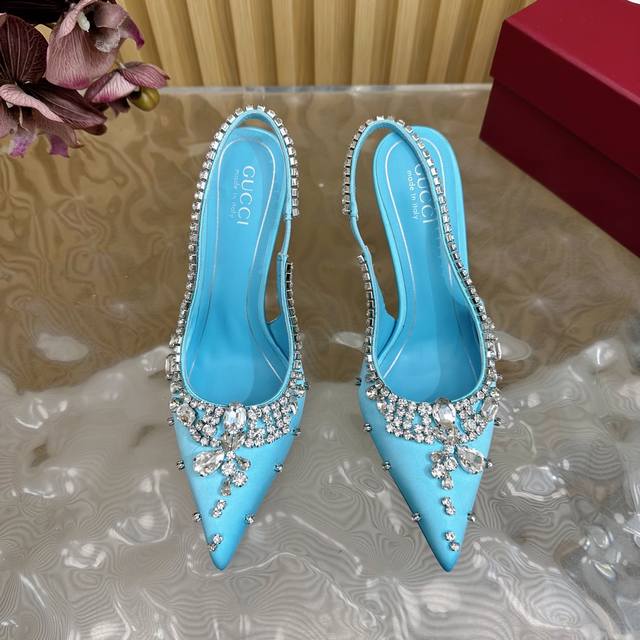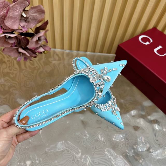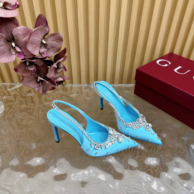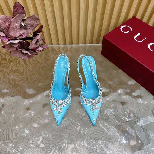 2025专柜同步春夏新款Gucci 25S春夏新品水钻糖果色 后带凉鞋高跟