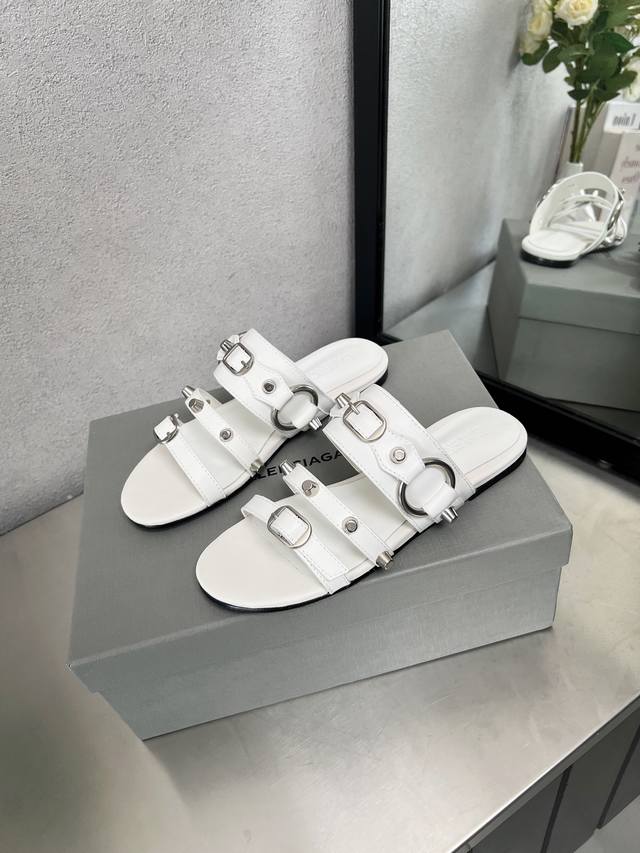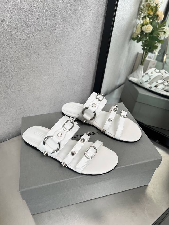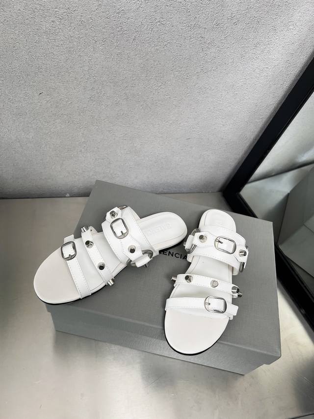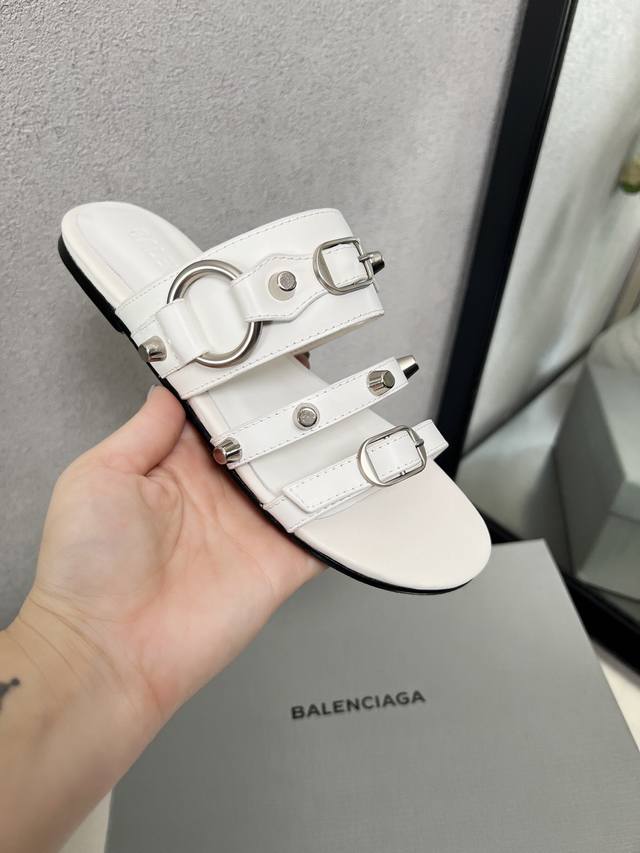 25ss Balenciaga 巴黎世家最新系列个性铆钉真皮大底平底拖鞋牛皮面35-41,出厂