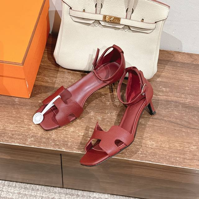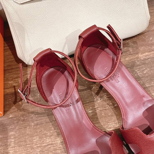 4cm组图 出厂价 Hermes 爱马仕 Joy 40高跟凉鞋 时尚又百搭 搭配H鞋头 超级舒服 每个细节都做到极致 搭配同色调标志性纯鞋扣 设计简约流畅 打造时尚柔美造型 原版小牛皮原版1:1独家私模鞋跟 原版真皮大底