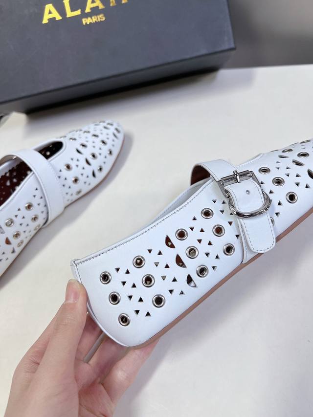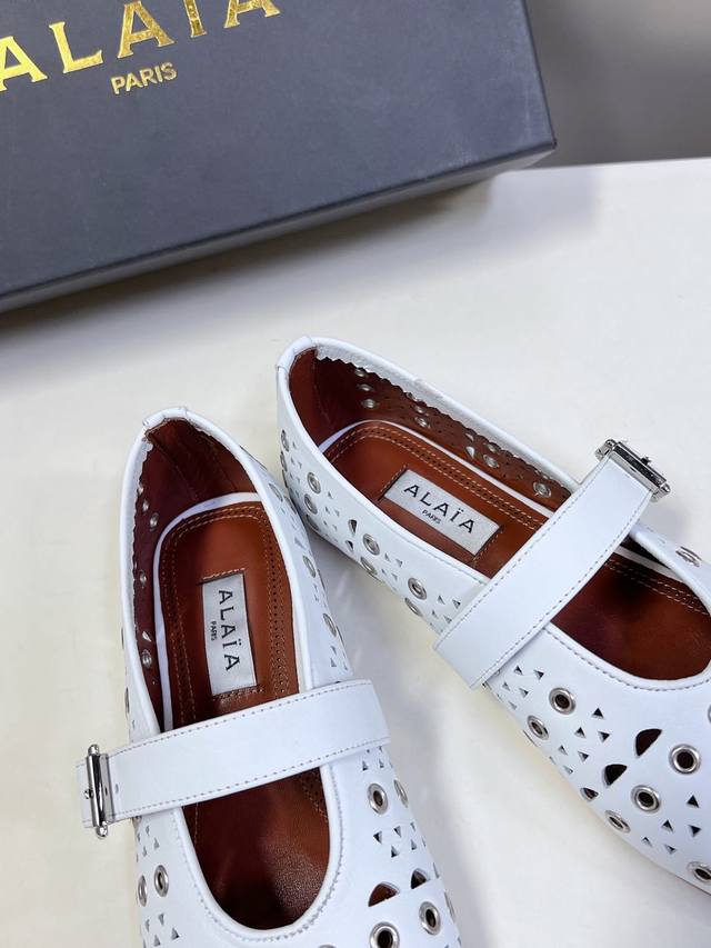 Alaia阿莱娅春夏秀款芭蕾舞 超多网红名媛在穿 搭配上不同款式,不同风格都能轻松驾驭,无论牛仔裤,西装裤,还是百褶裙,都能将你的穿搭提升到时尚,优雅和卓越之中 面料选用原版材质 搭配性感极致 内里垫脚羊皮 原版开模橡胶大底码数:35-41 40 41不退换