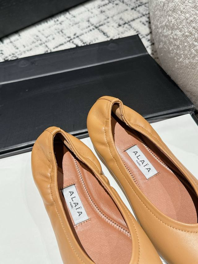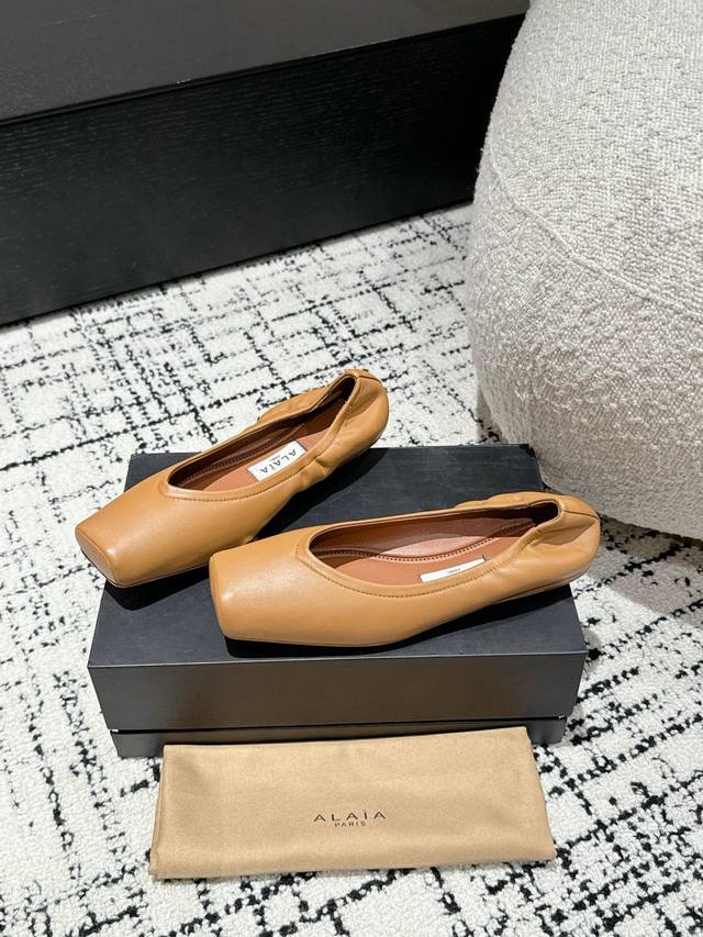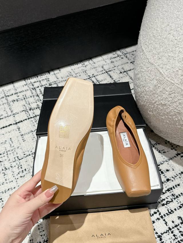 / Alaia 25 走秀款方头芭蕾舞鞋甜酷芭蕾风 人气超高的一款芭蕾舞鞋,浪漫又迷人 舒适百搭面料:原版订制牛皮 金属扣内里:羊皮内里大底:真皮大底Size:#3