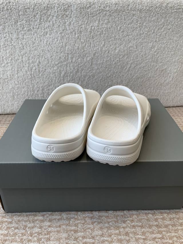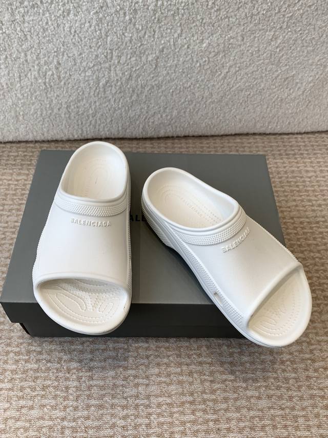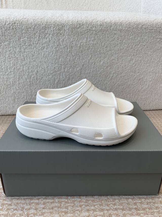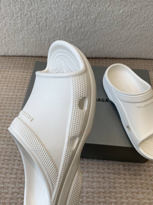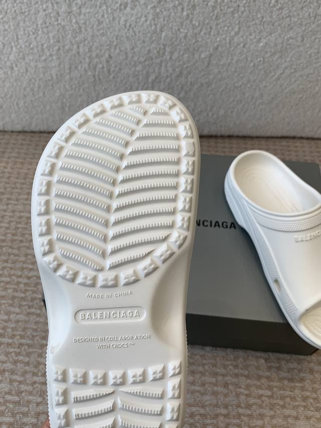 BALENCIAGE 巴黎世家 Pool Crocs 合作款厚底拖原版1:1还原,单码单模,大小合适,舒适度满满,后跟和原版一致有码标,所有鞋面颗粒感,鞋底纹路