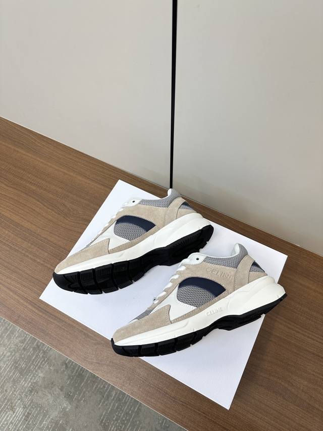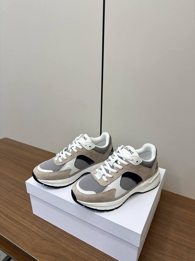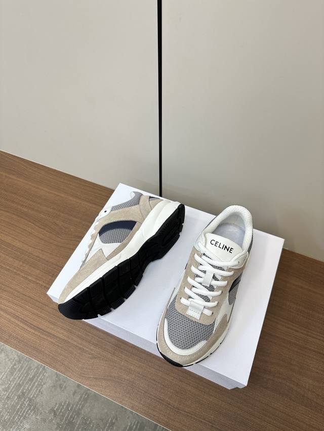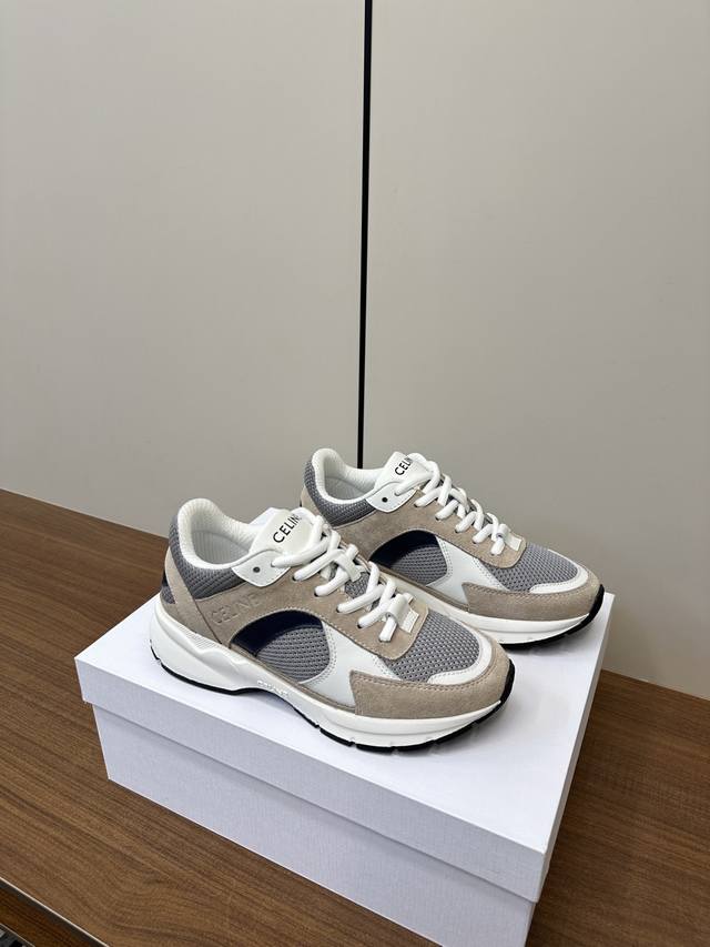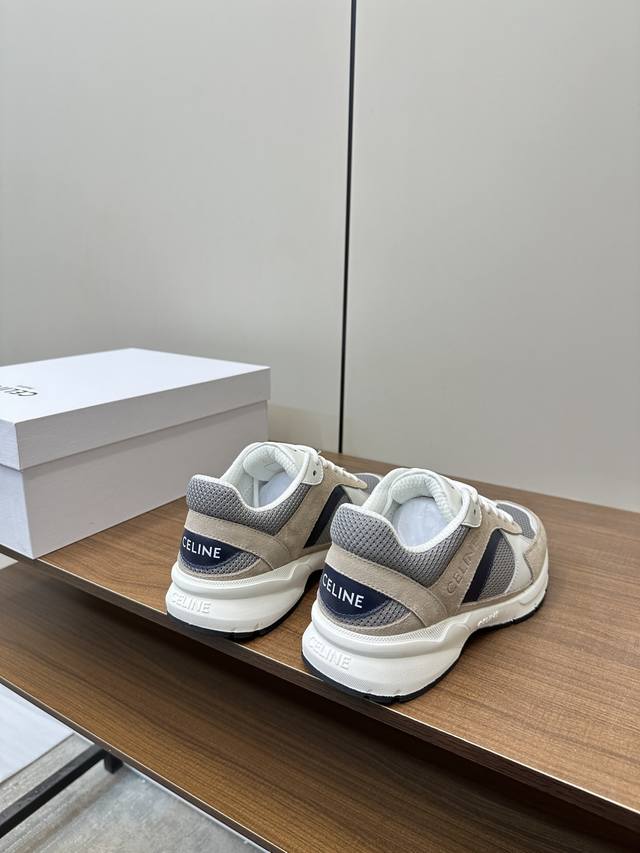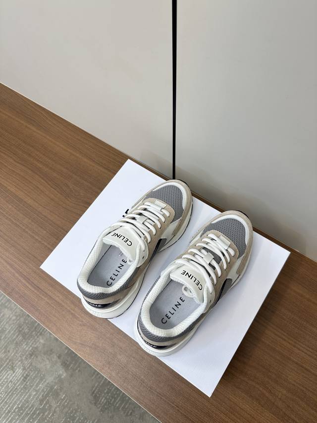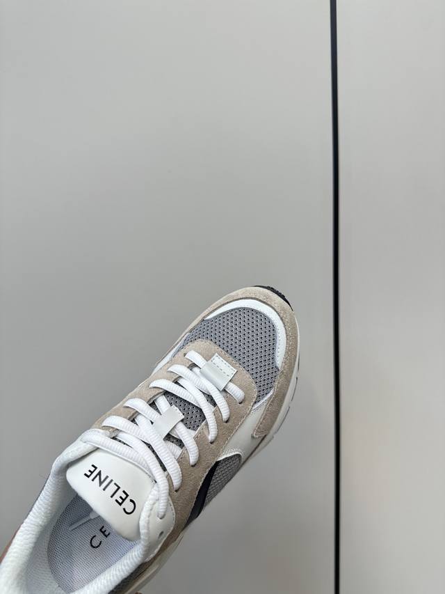 鞋舌和鞋后帮饰有CELINE标志运动鞋侧面凹印 CR-03字样鞋后帮和侧面压印CELINE标志!