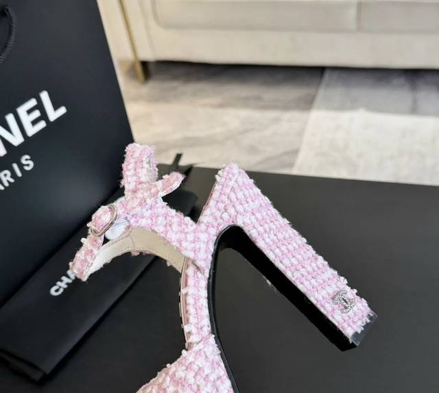 CHANE*|小香25c早春新品T字带双C高跟凉鞋鞋面采用小羊皮内里垫脚均为羊皮意大利进口真皮大底码数:35-39 40定制