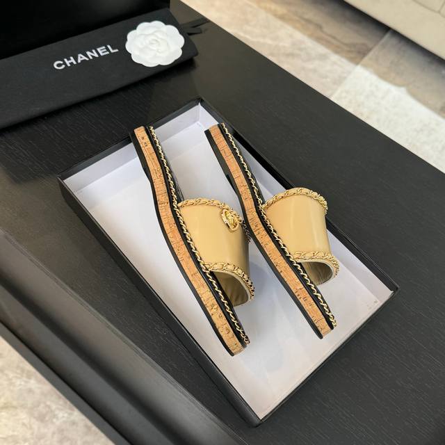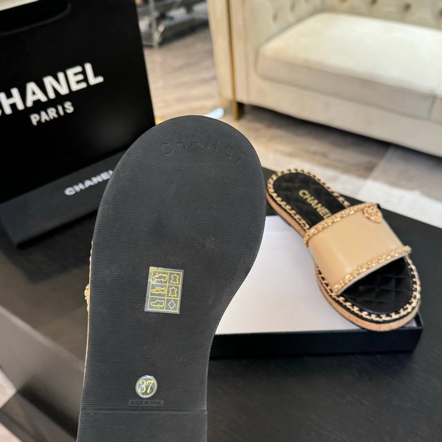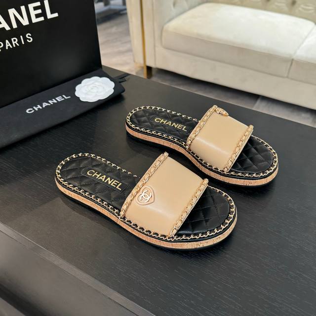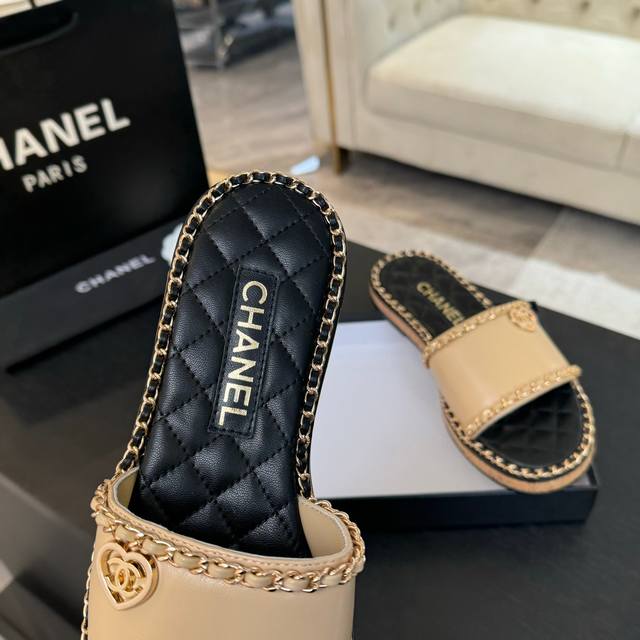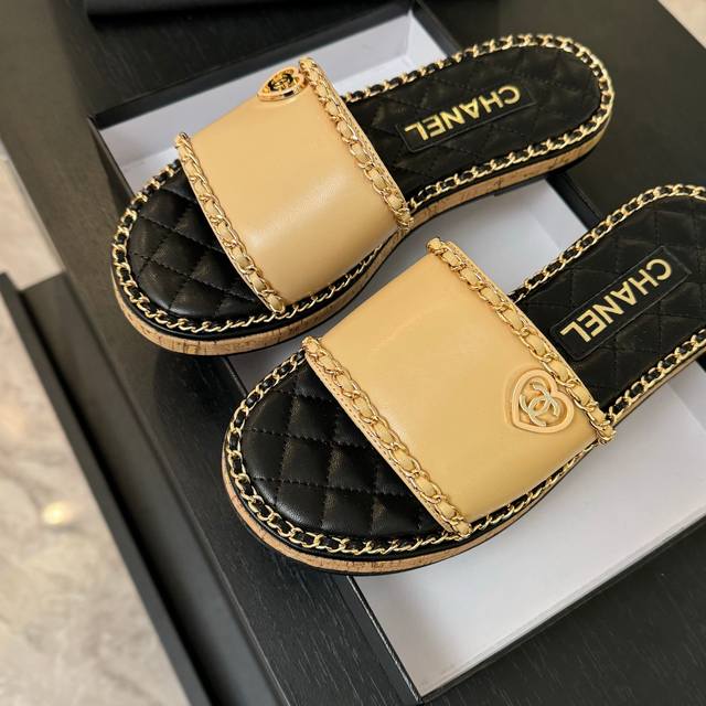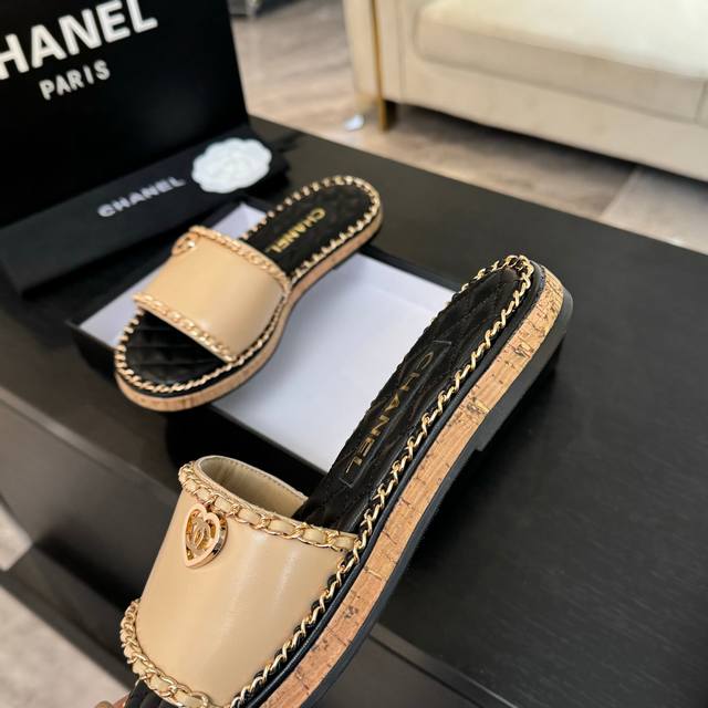 CHANE*|小香25C春夏新品度假厚底链条双C爱心凉拖拖鞋这一季度假凉拖系列真的超美 搭配链条双C五金装饰 简约百搭上脚超级美的 怎么看怎么好看 Go 材质: