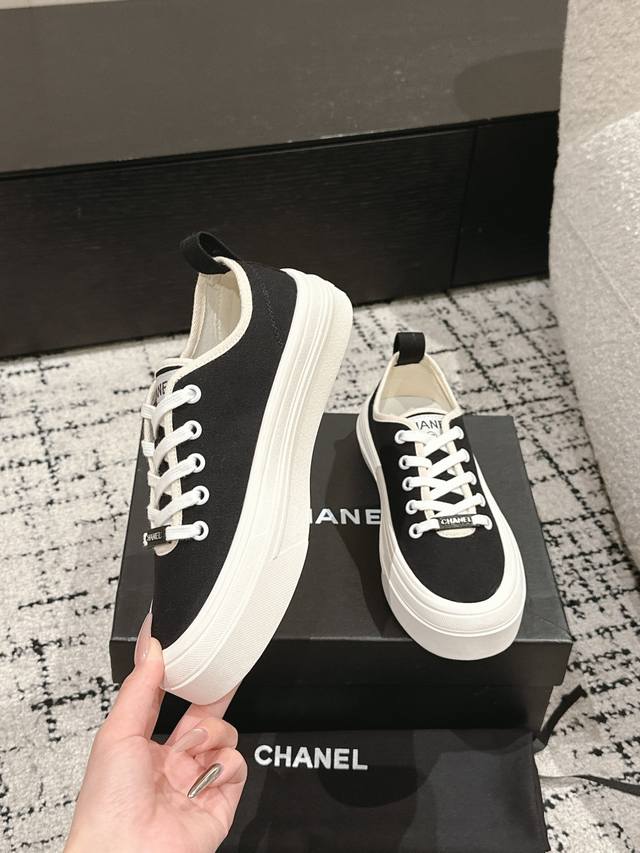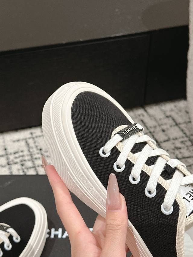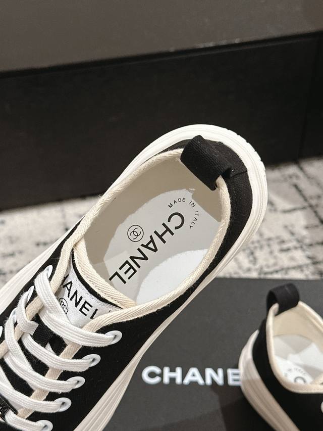 Chanel香奈儿 25 隐藏中古款帆布鞋Vintage感满满,中古复刻get啦~帆布鞋适配春夏,黑白拼接就很Chanel。配合袜子就很复古学院的感觉。鞋面:帆