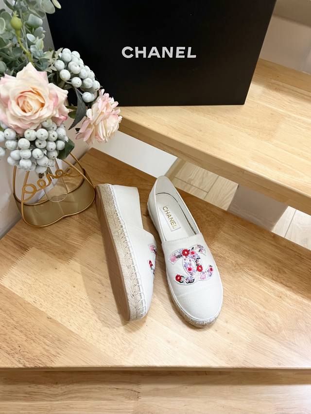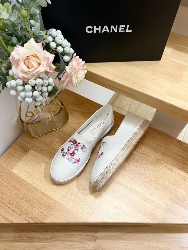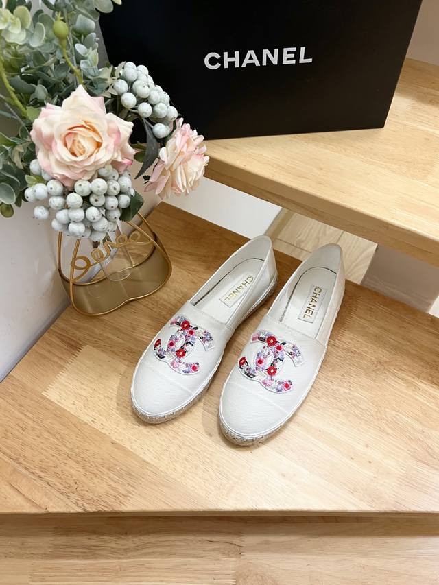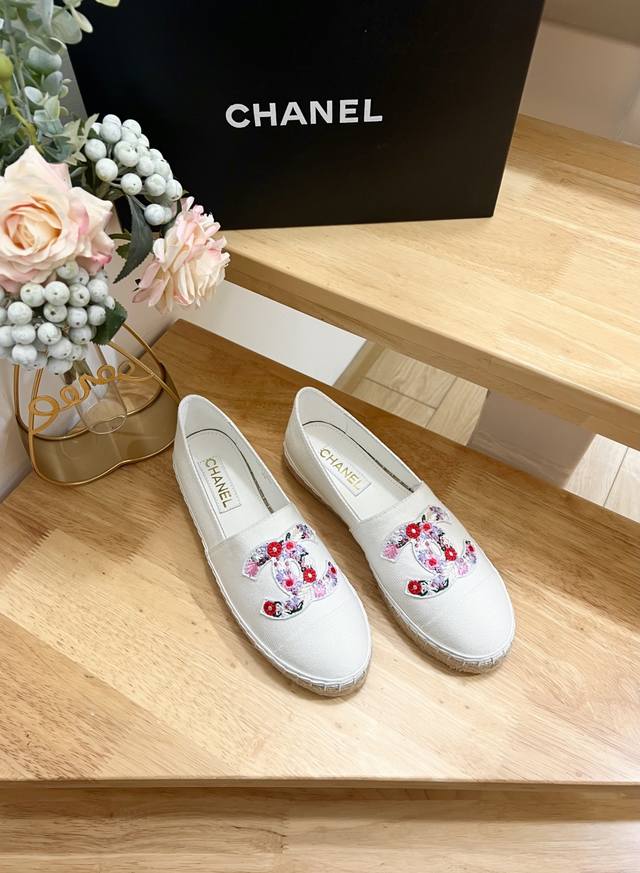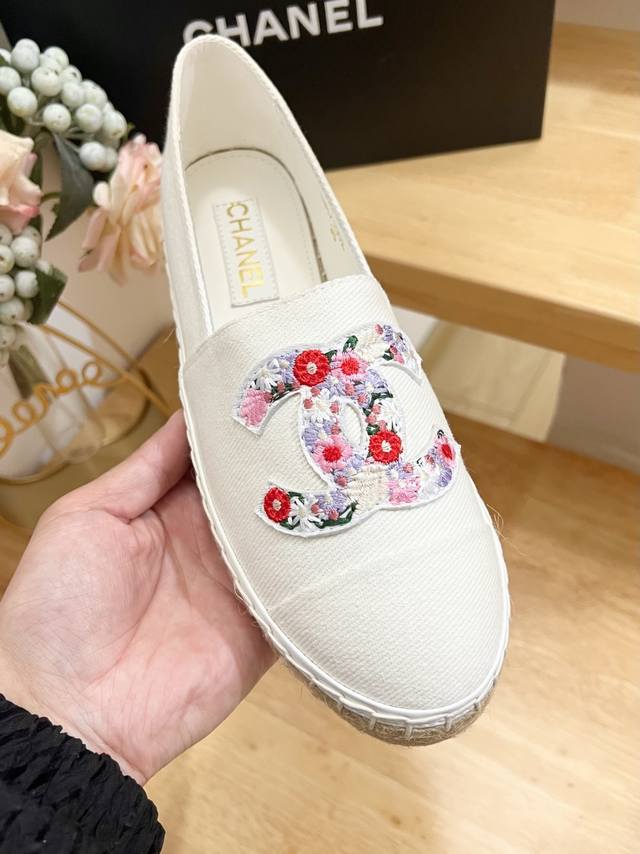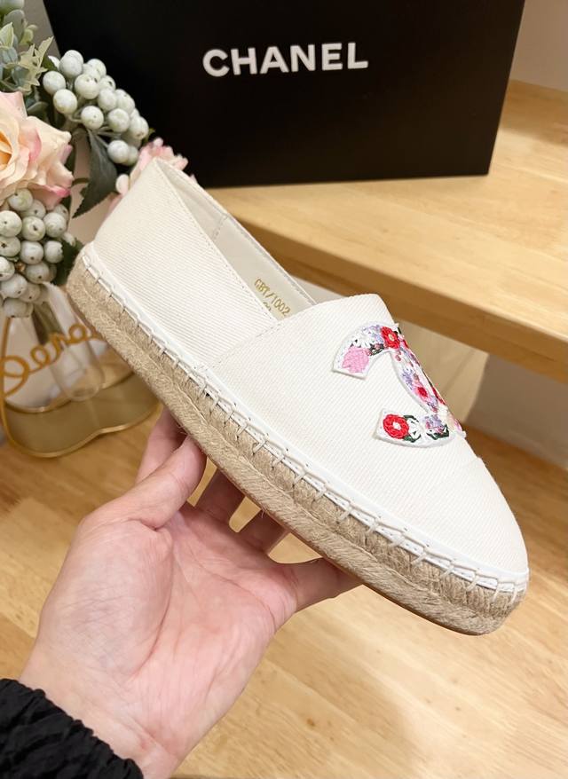 CHANEL香奈儿 25ss 新款早春双c拼色 刺绣花朵帆布 渔夫鞋