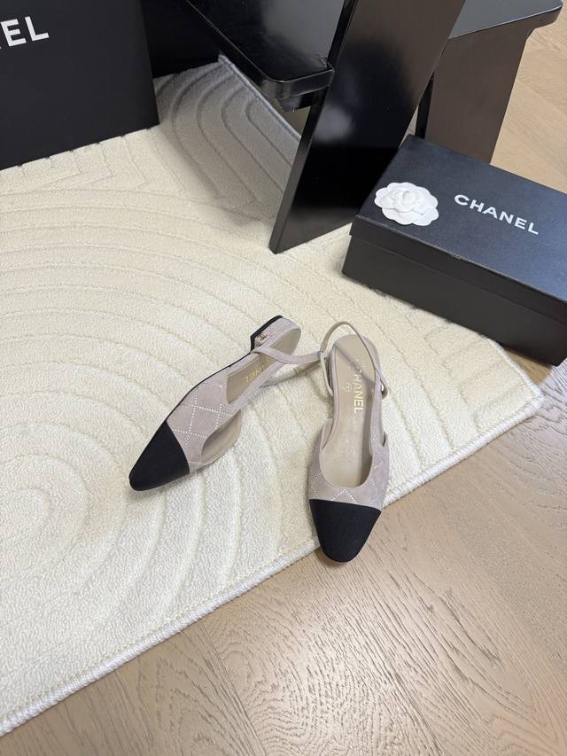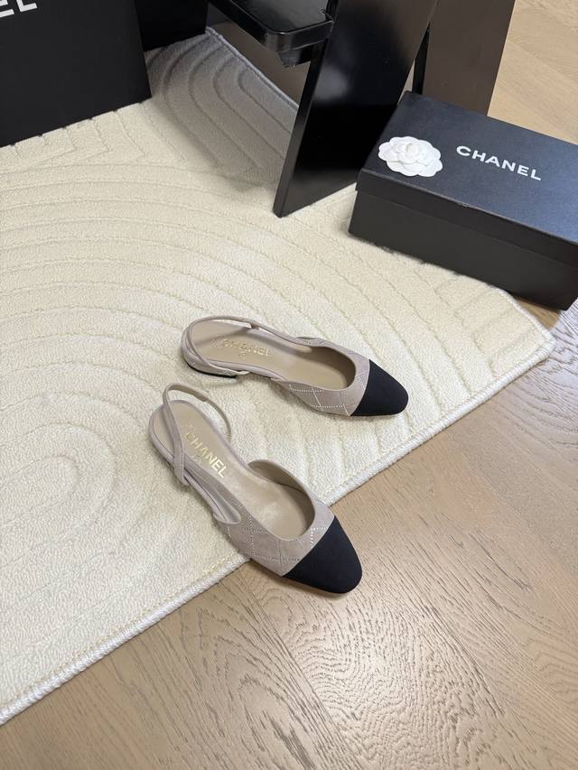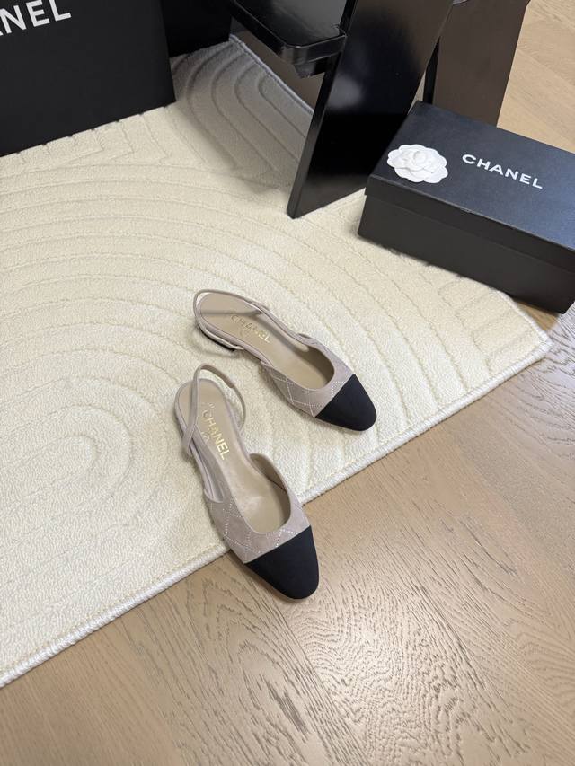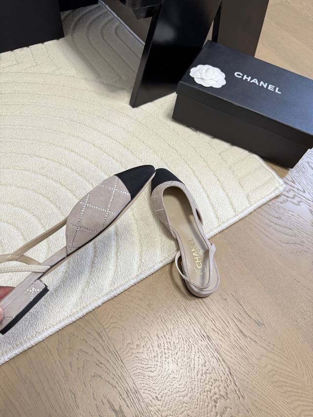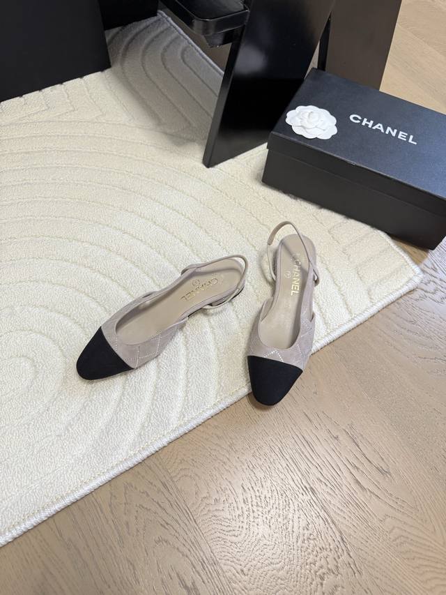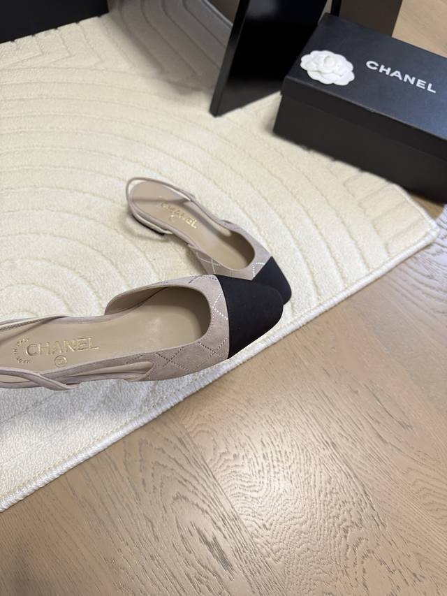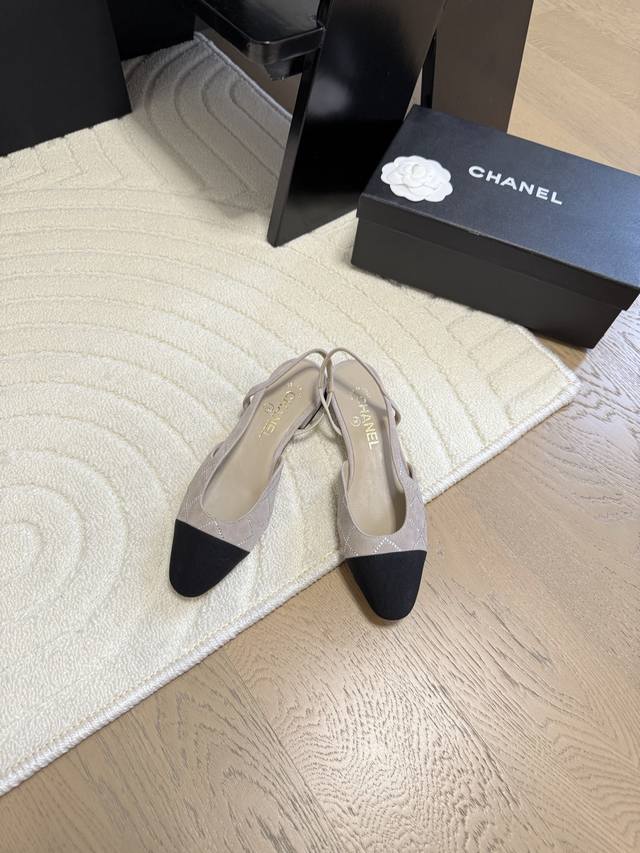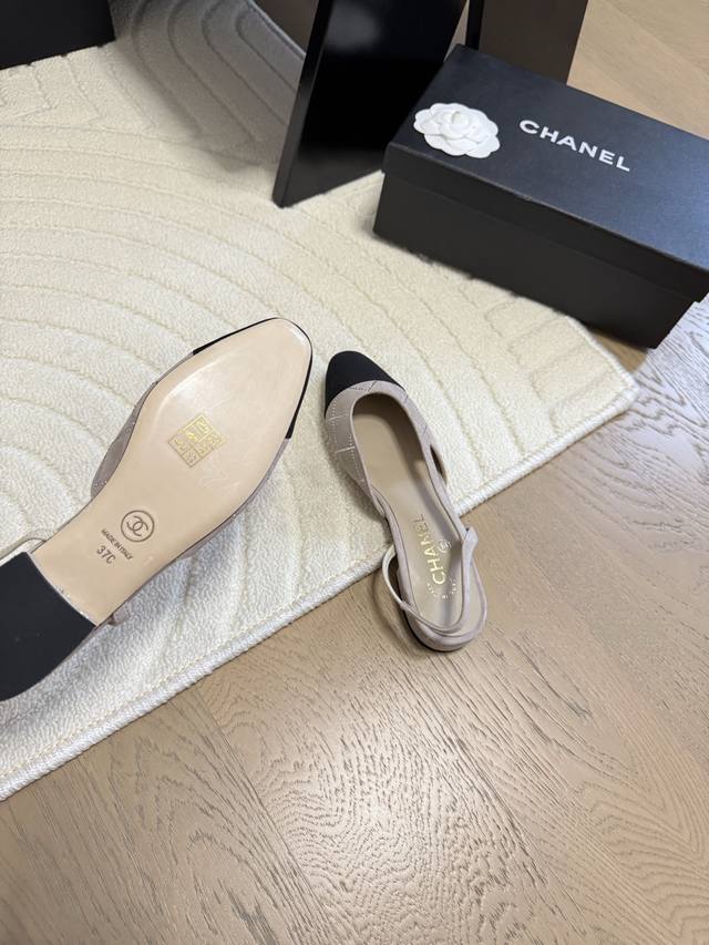 Chanel 经典slingback后空凉鞋前几年一直在做这个款今年我们还是重新购版,再次精细copy。发现新版面的鞋面线条和形体舒适度都做了微调! 这个品牌方