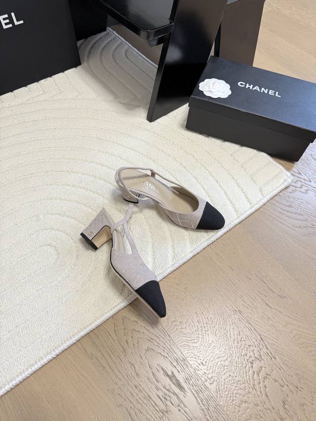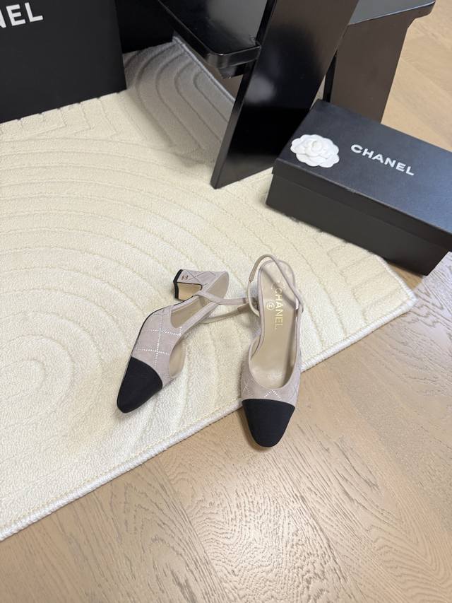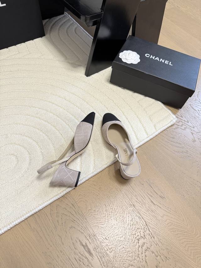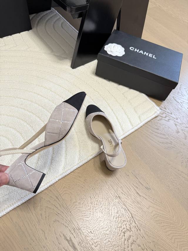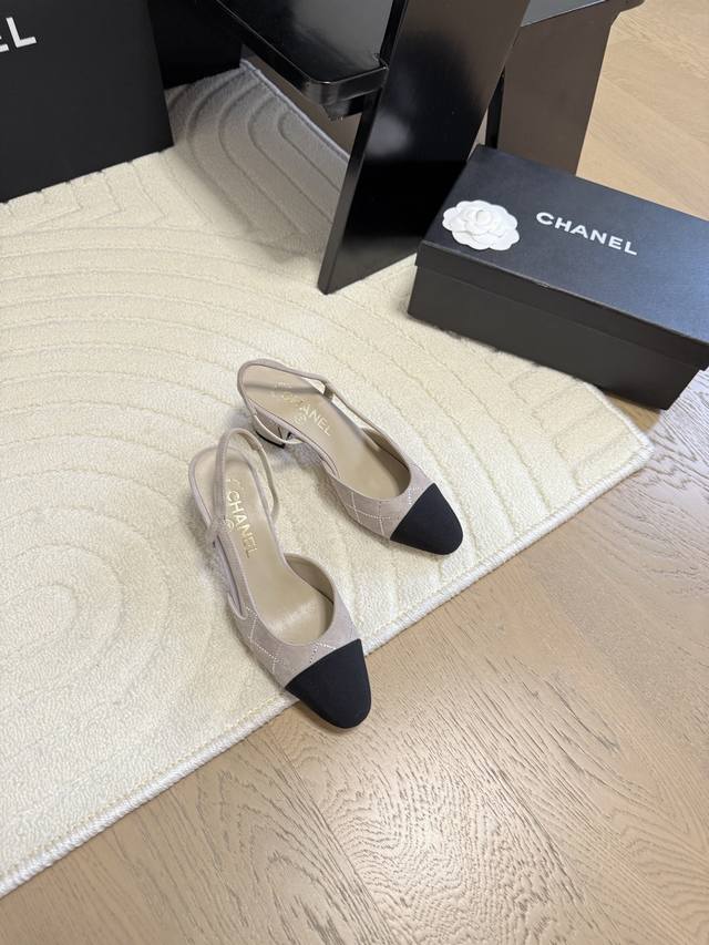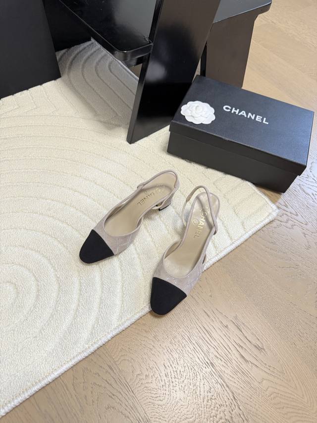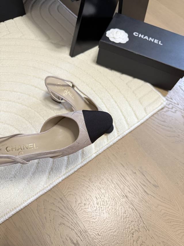 Chanel 经典slingback后空凉鞋前几年一直在做这个款今年我们还是重新购版,再次精细copy。发现新版面的鞋面线条和形体舒适度都做了微调! 这个品牌方