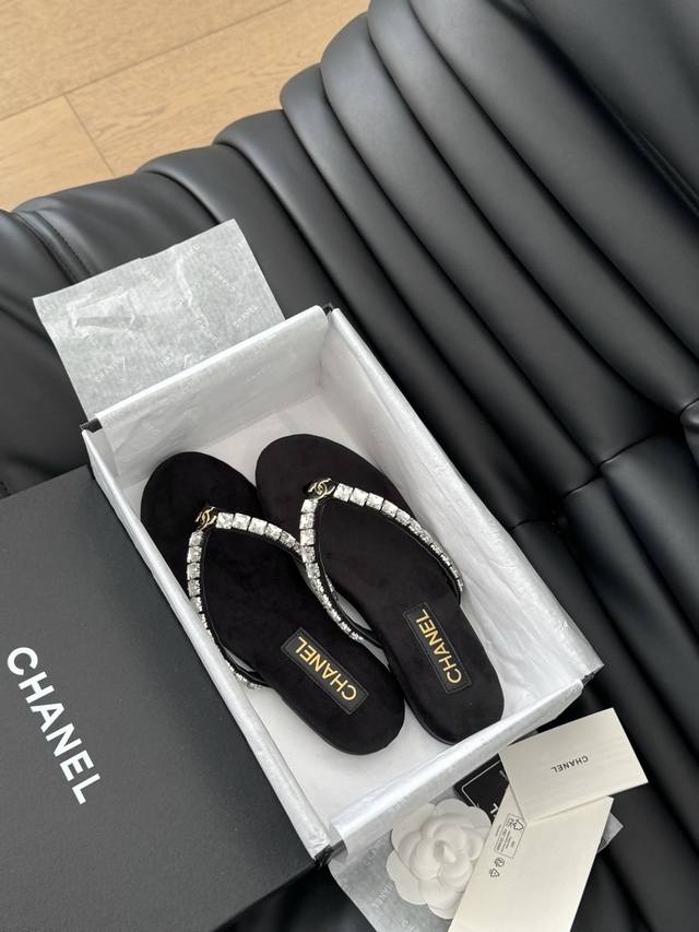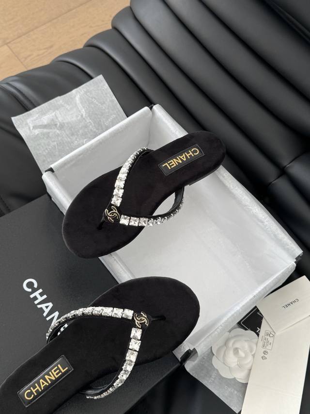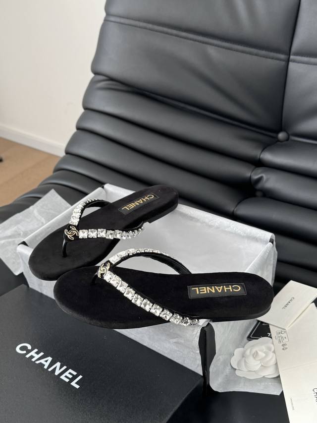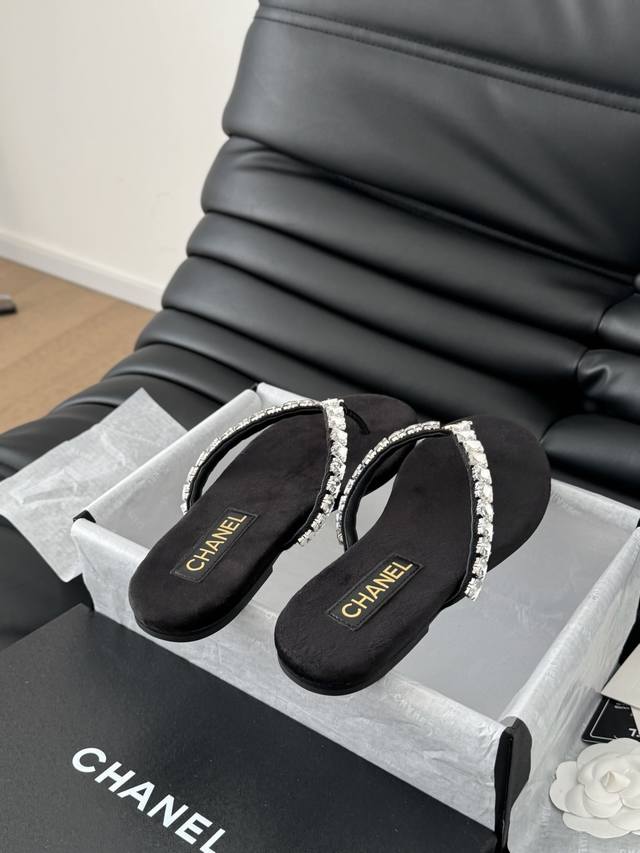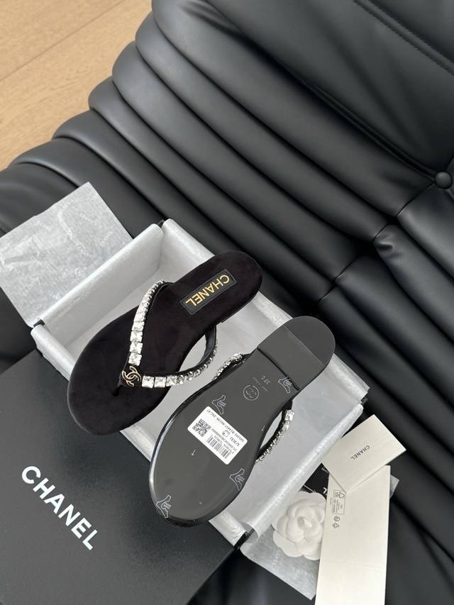 Chanel 25C新品夹脚人字拖鞋!这一系列这真的是绝了 怎么会这么美!夏天真的是无敌搭配可盐可甜~ 鞋面采用进口小牛皮 丝绒内里是小羊皮 丝绒真皮大底码数: