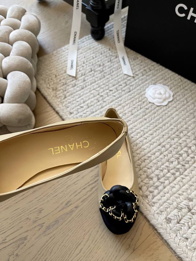 Chanel 25C早春新款山茶花单鞋!顶级版本!经典山茶花配饰高级感十足 上脚非常nice鞋面进口小羊皮 垫脚羊皮 真皮大底码数:34-41 定制不退不换