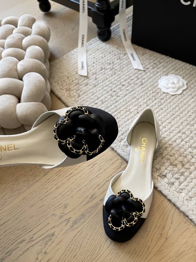 Chanel 25C早春新款山茶花单鞋!顶级版本!经典山茶花配饰高级感十足 上脚非常nice鞋面进口小羊皮 垫脚羊皮 真皮大底码数:34-41 定制不退不换