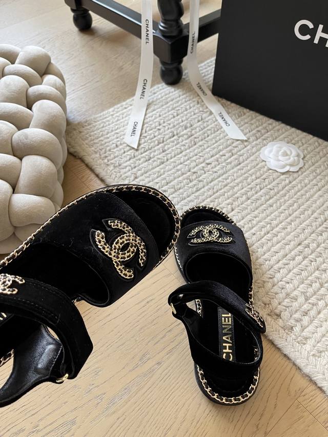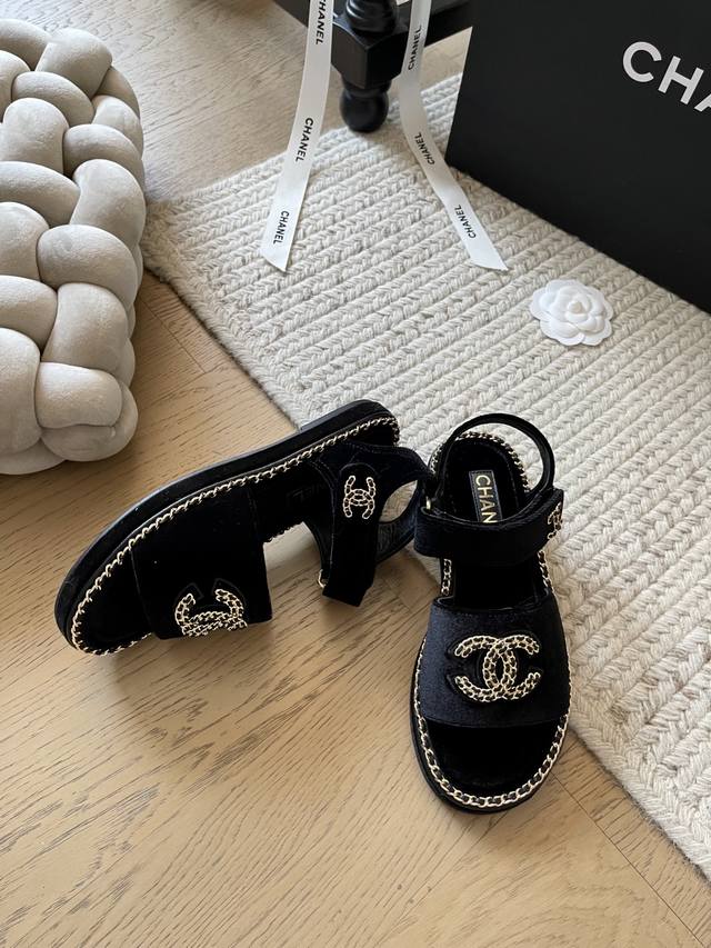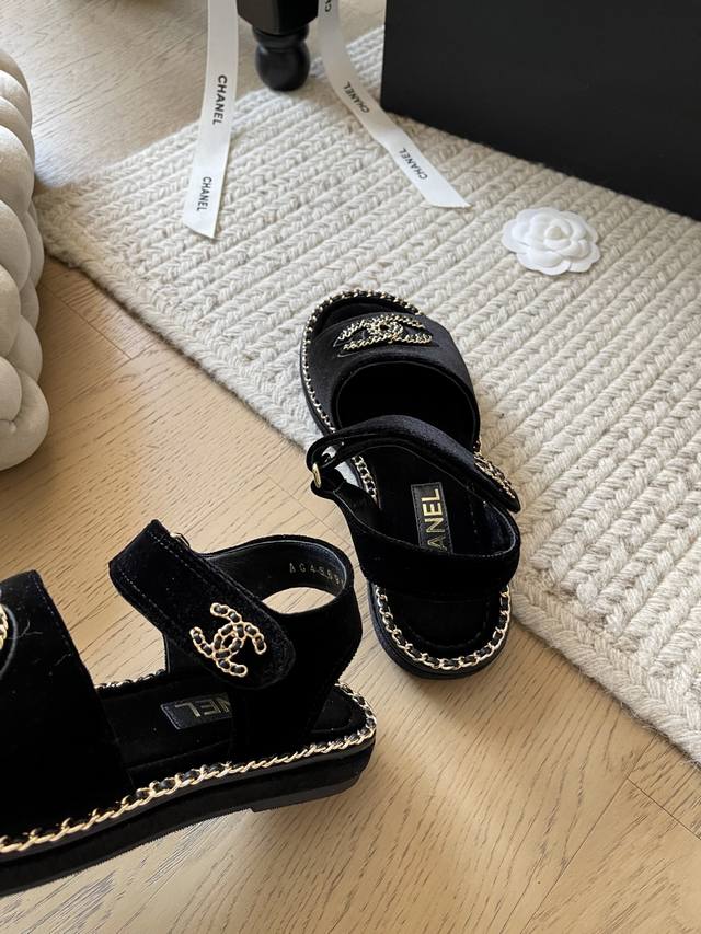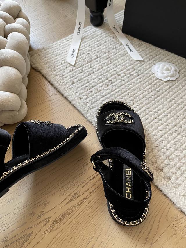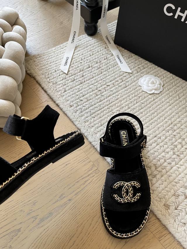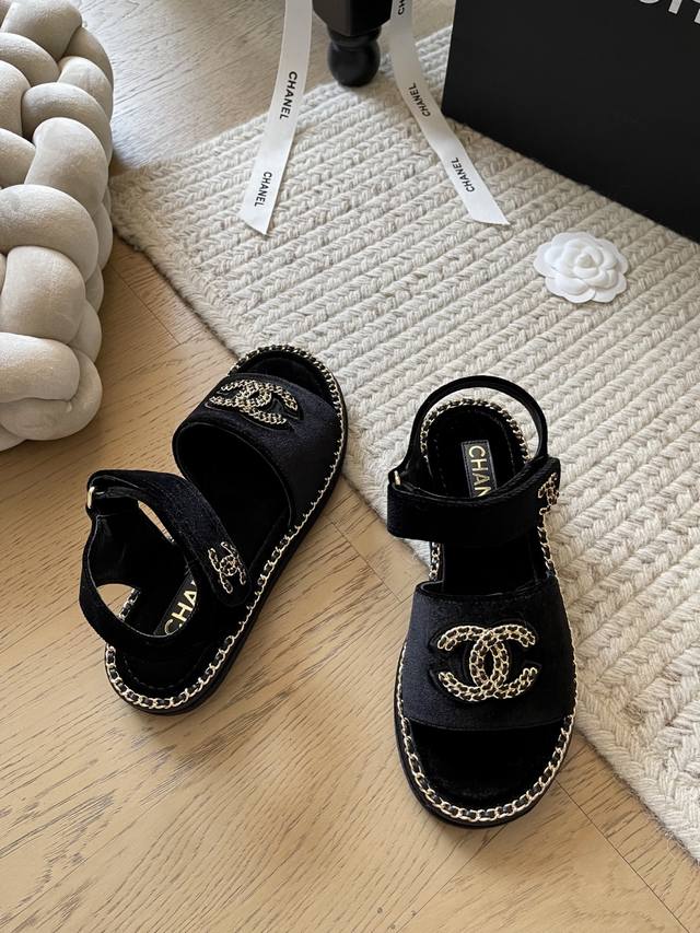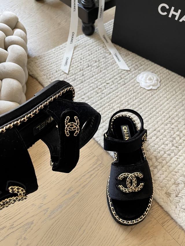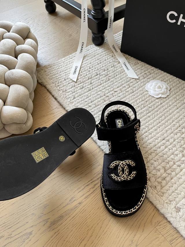 Chanel 25c早春新款链条凉鞋系列!顶级版本!抢先发售要高货的看过来鞋面牛皮 内里羊皮 原版防滑大底码数:34-41 定制不退不换
