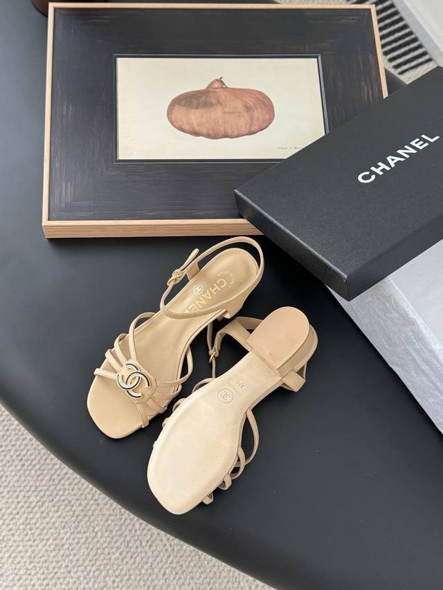 Chanel 25P早春新款高级手工坊凉鞋一如既往的高版本 经典版面 鞋面内里羊皮 真皮大底平底 5 8 三个高度Size:35-39 其他码数定