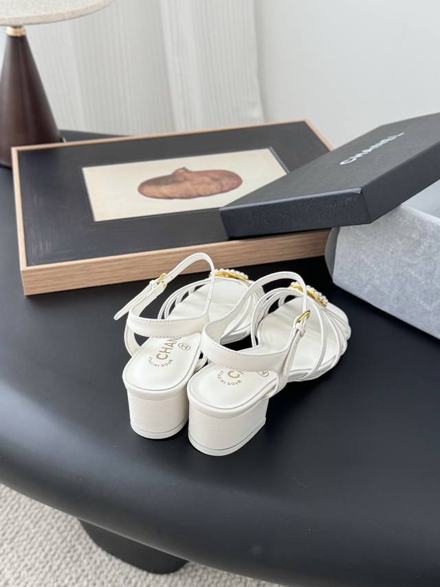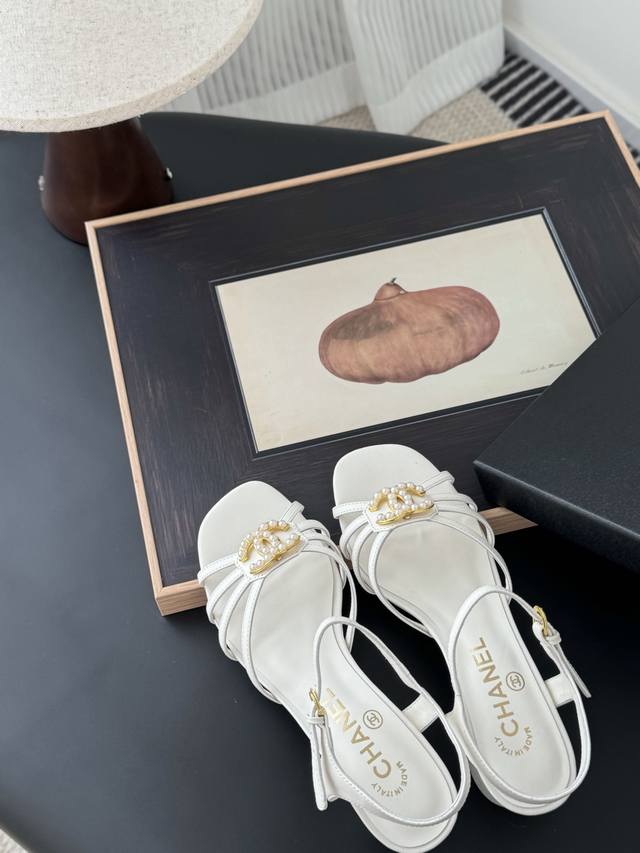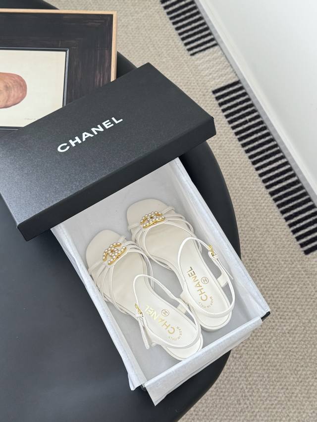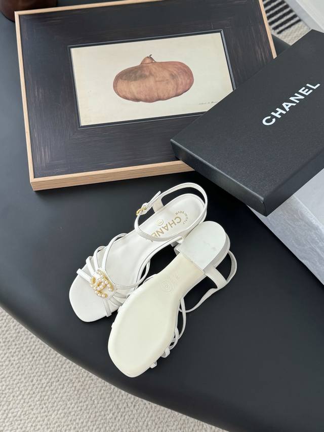 Chanel 25P早春新款高级手工坊凉鞋一如既往的高版本 经典版面 鞋面内里羊皮 真皮大底平底 5 8 三个高度Size:35-39 其他码数定