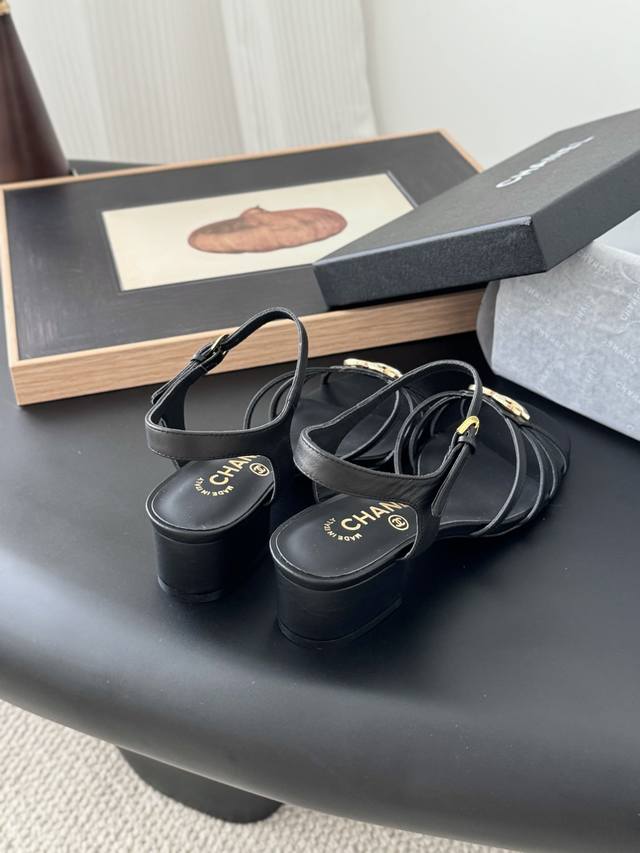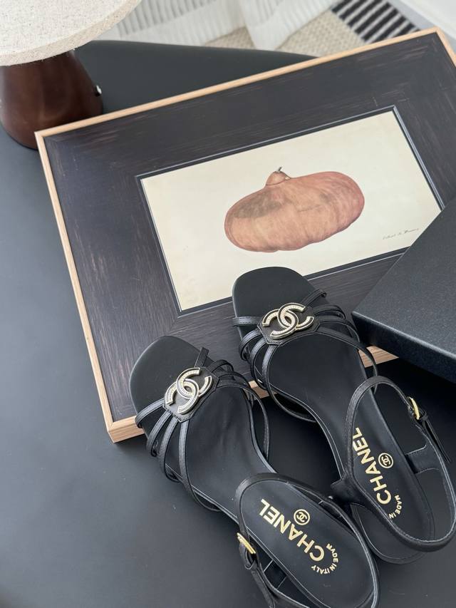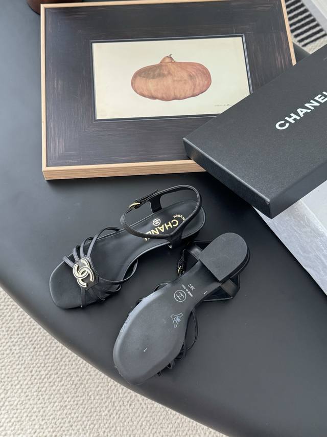 Chanel 25P早春新款高级手工坊凉鞋一如既往的高版本 经典版面 鞋面内里羊皮 真皮大底平底 5 8 三个高度Size:35-39 其他码数定