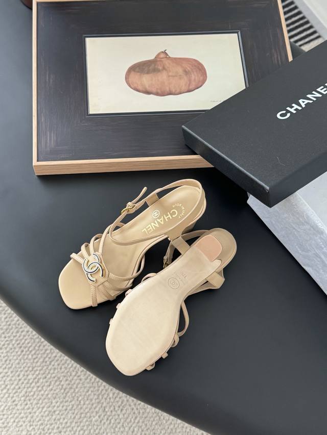 Chanel 25P早春新款高级手工坊凉鞋一如既往的高版本 经典版面 鞋面内里羊皮 真皮大底平底 5 8 三个高度Size:35-39 其他码数定