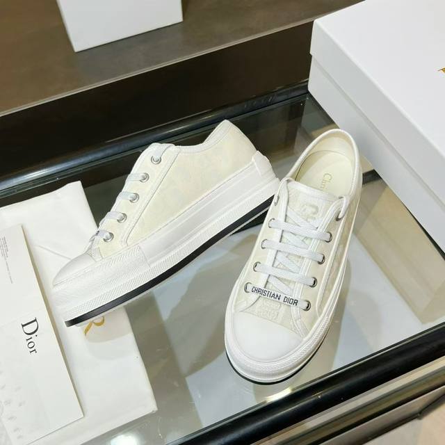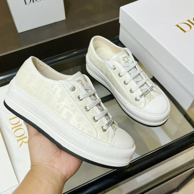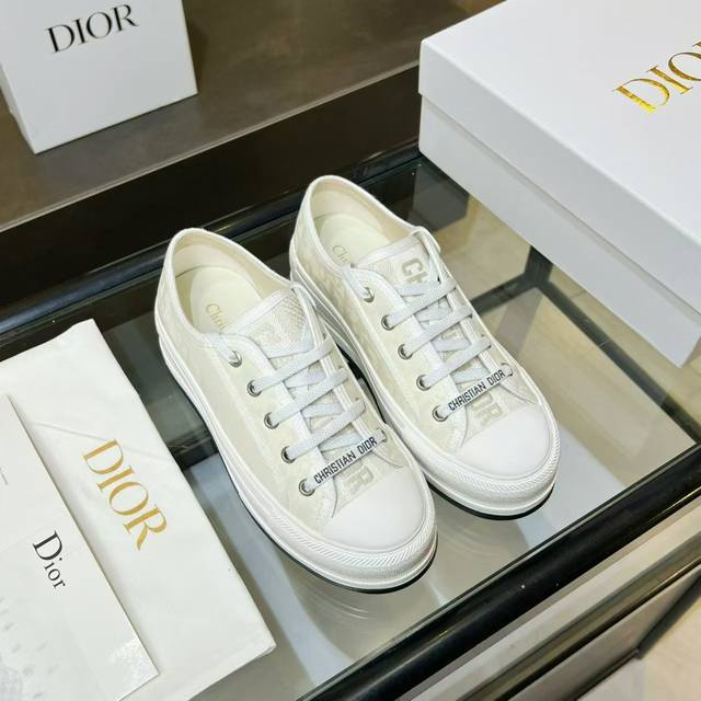 Dior迪奥2025Walk'n系列 皮面印花厚底帆布鞋 休闲运动鞋