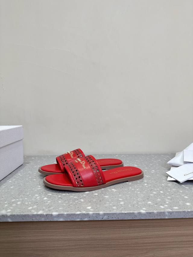 Dior 迪奥 25ss春夏新款 D-Lane 镂空平底圆头 露趾拖鞋