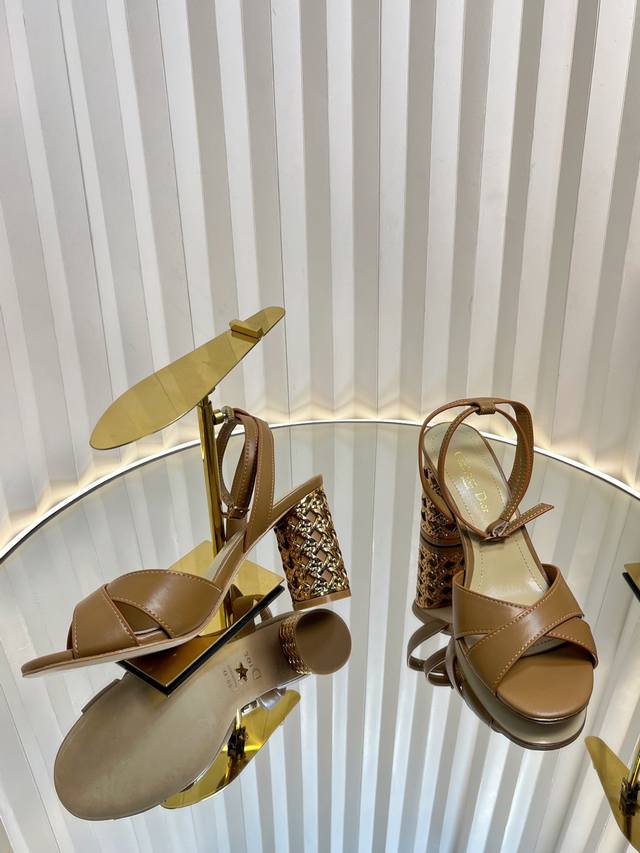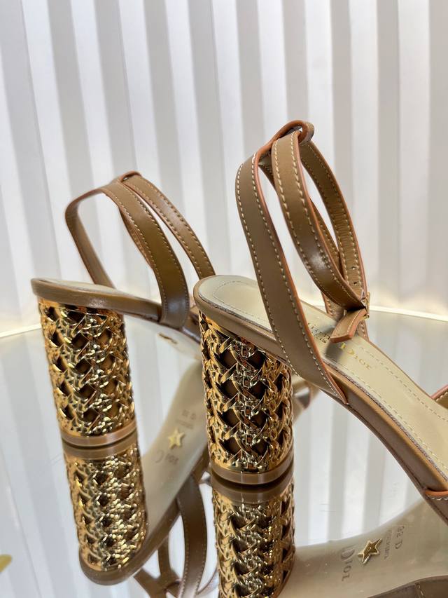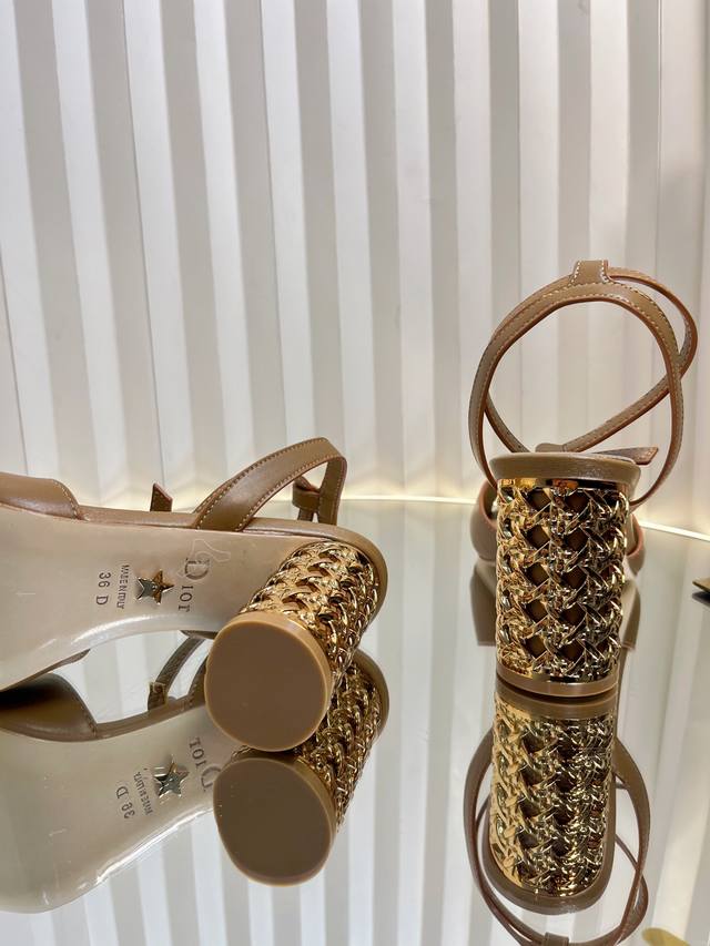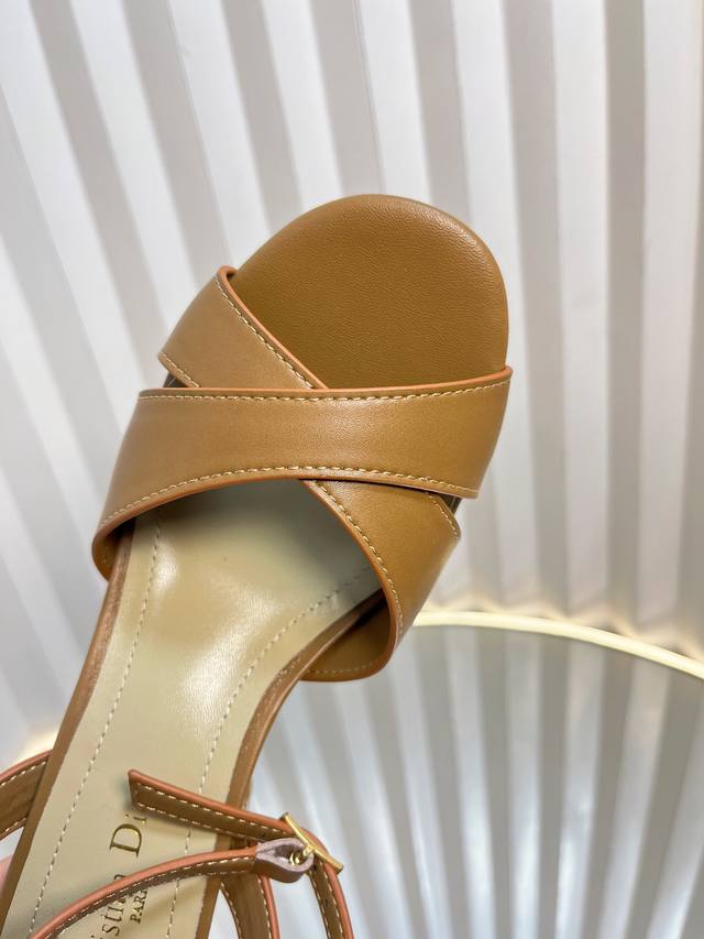 / Dior 迪奥2024秋冬新款Icon系列圆柱跟脚环绑带女鞋 CD明星同款高跟圆头交叉带拼色凉鞋材质:鞋面进口全粒面小牛皮+水染羊皮内里垫脚+意大利真皮大底跟高